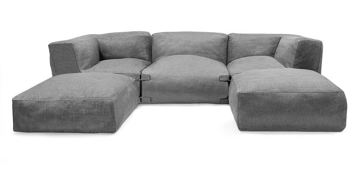 Modularer Pouf für Gartenecksofa mit wasserabweisendem grauem Bezug. .. mehr