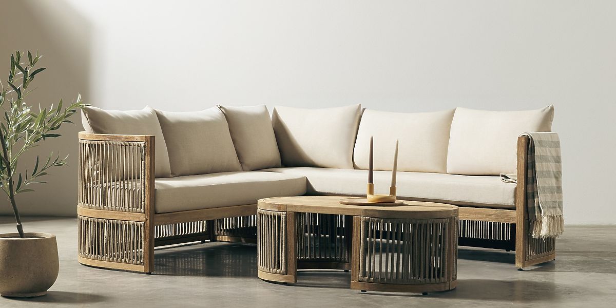 Lukahome.at   »   Gartenmöbel   /   Gartensets   /   Gartenecksofa-Set mit Tisch Vetralla, Geflecht, Akazienholz FSC, Teak-Optik, hellbeige