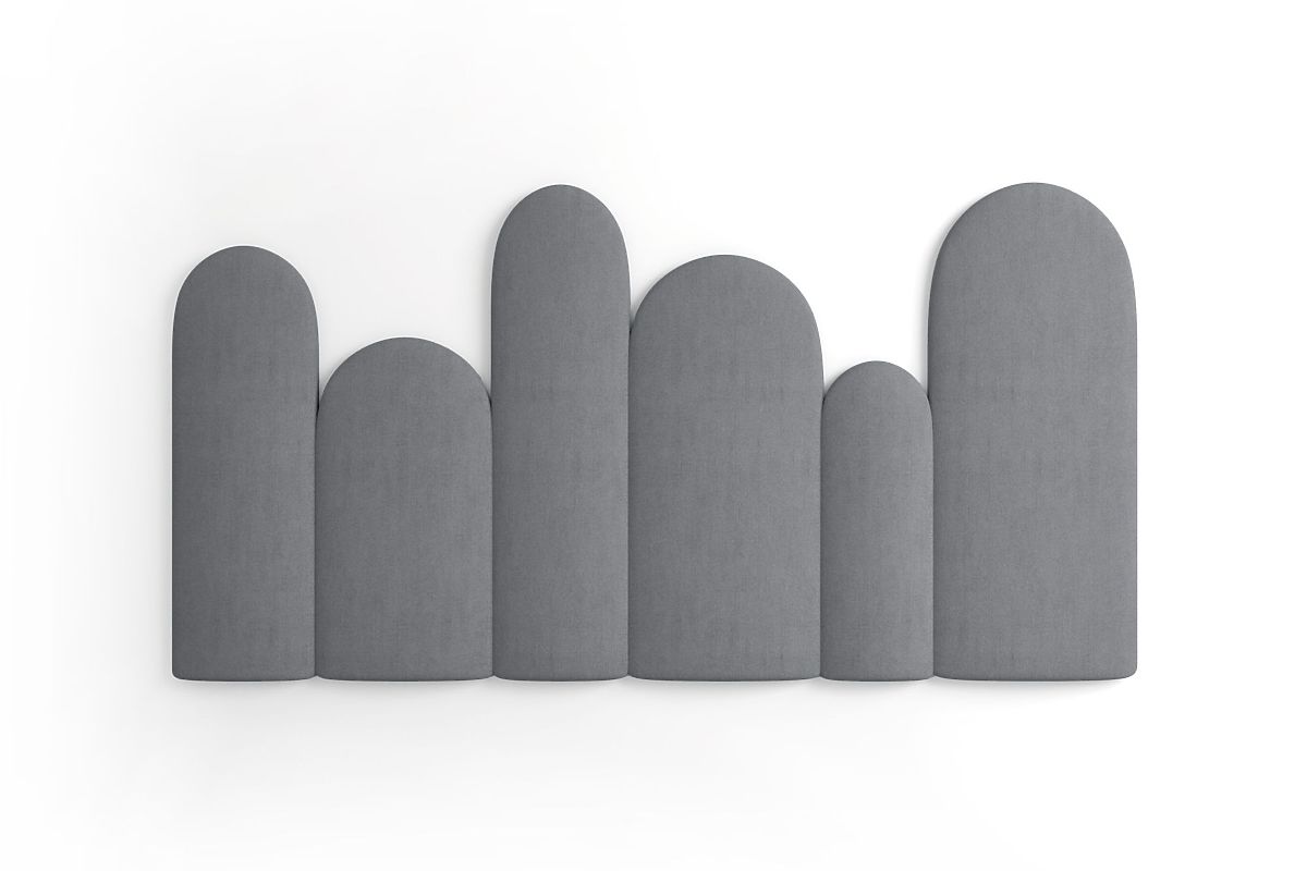 Set gepolsterter Paneele ist eine originelle Lösung zur Belebung des Kinderzimmers oder Schlafzimmers. Es enthält 6 Module mit abgerundeter Oberkante, die an einen Zaun erinnern und beliebig kombiniert werden können, um ein eigenes Arrangement an der Wand zu schaffen. Die Paneele werden mit Fokus auf Qualität, Sicherheit und Komfort hergestellt. Die graue Ausführung wirkt universell und lässt sich leicht mit anderen Möbeln und Accessoires kombinieren.