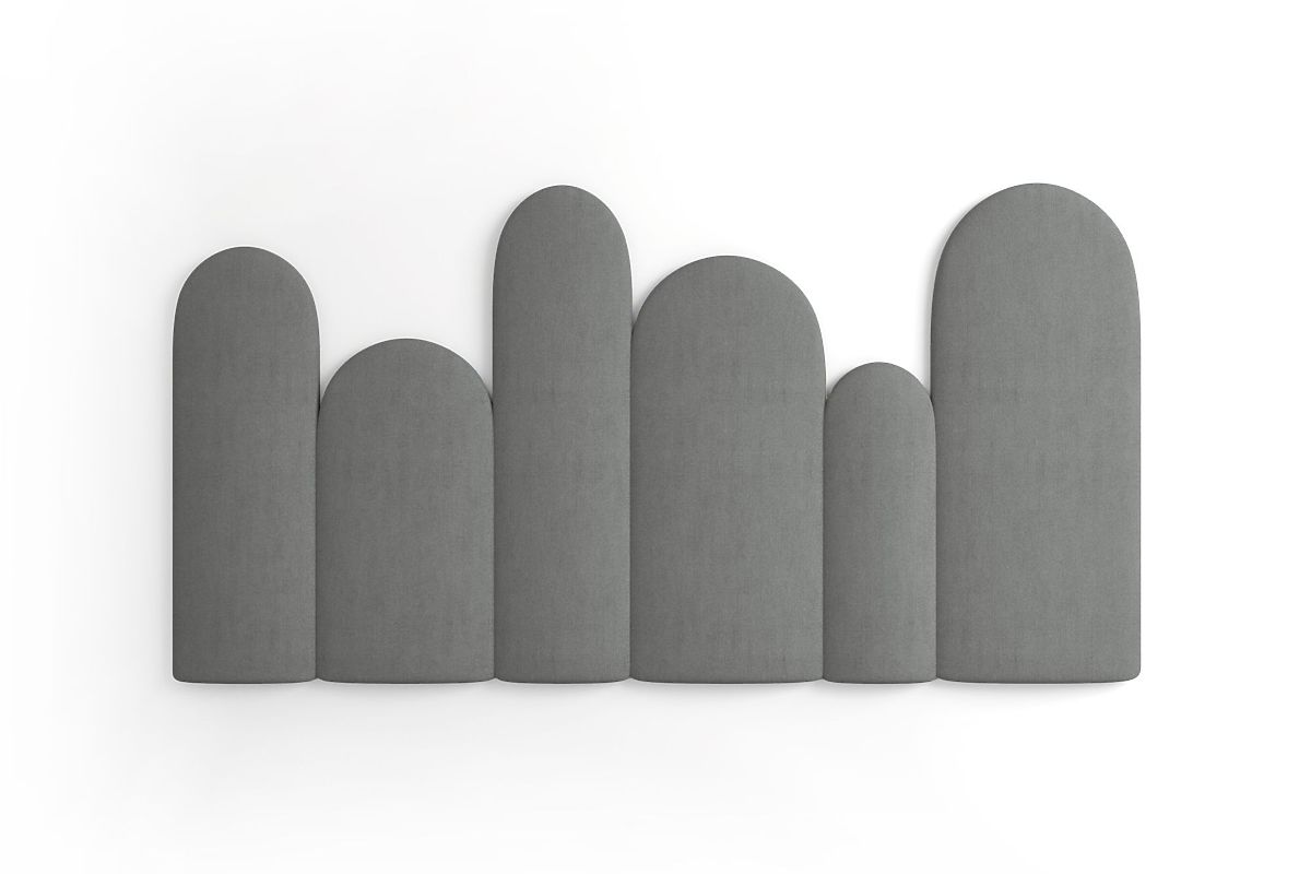 Satz gepolsterter Paneele ist eine originelle Lösung zur Belebung eines Kinderzimmers oder Schlafzimmers. Enthält 6 Module mit abgerundeter Oberkante, die an einen Zaun erinnern und beliebig kombiniert werden können, um eigene Wandgestaltungen zu schaffen. Die Paneele werden mit Fokus auf Qualität, Sicherheit und Komfort hergestellt. Die graue Ausführung wirkt universell und lässt sich leicht mit anderen Möbeln und Accessoires kombinieren.