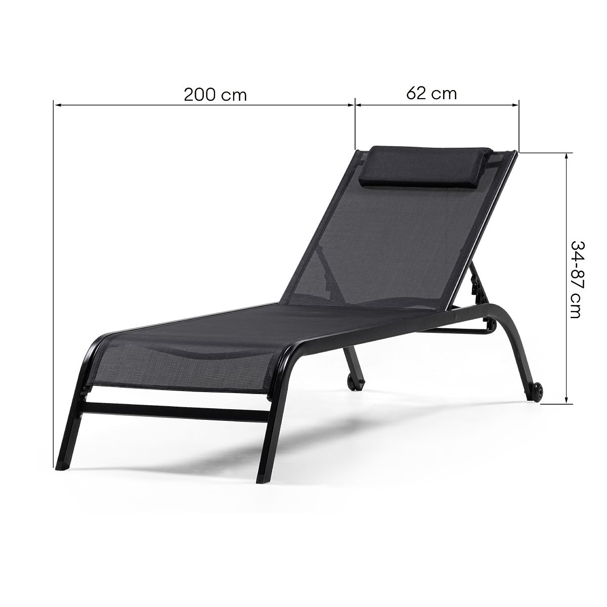 Verstellbare Gartenliege Sandy mit Rädern und abnehmbarem Kopfkissen. .. mehr