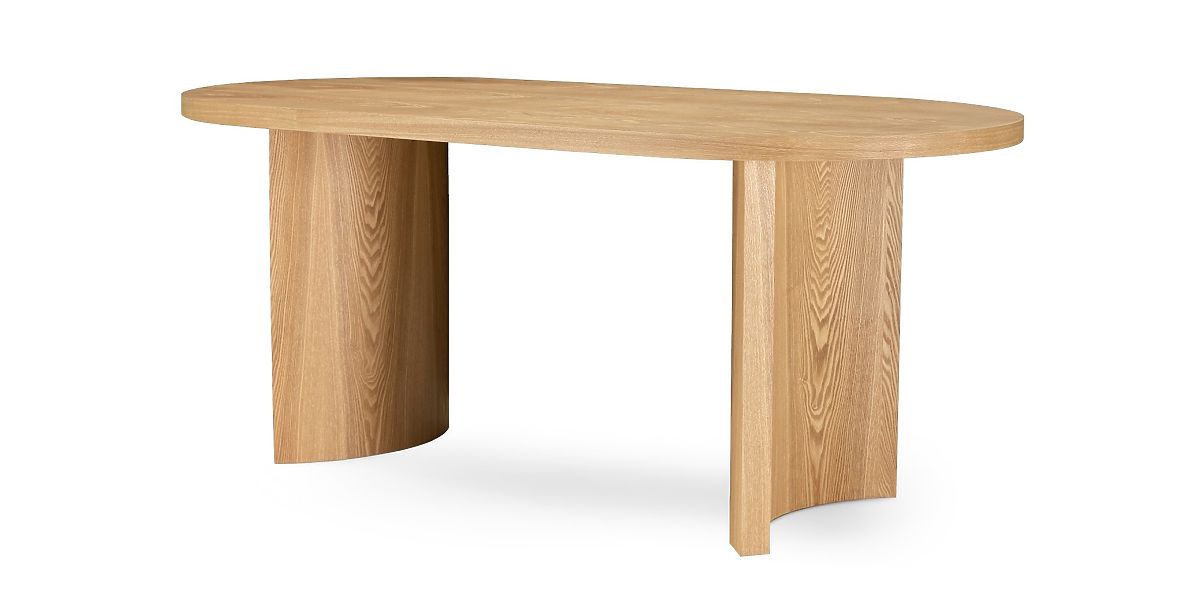 Ovaler Esstisch aus MDF mit Eschefurnier. .. mehr