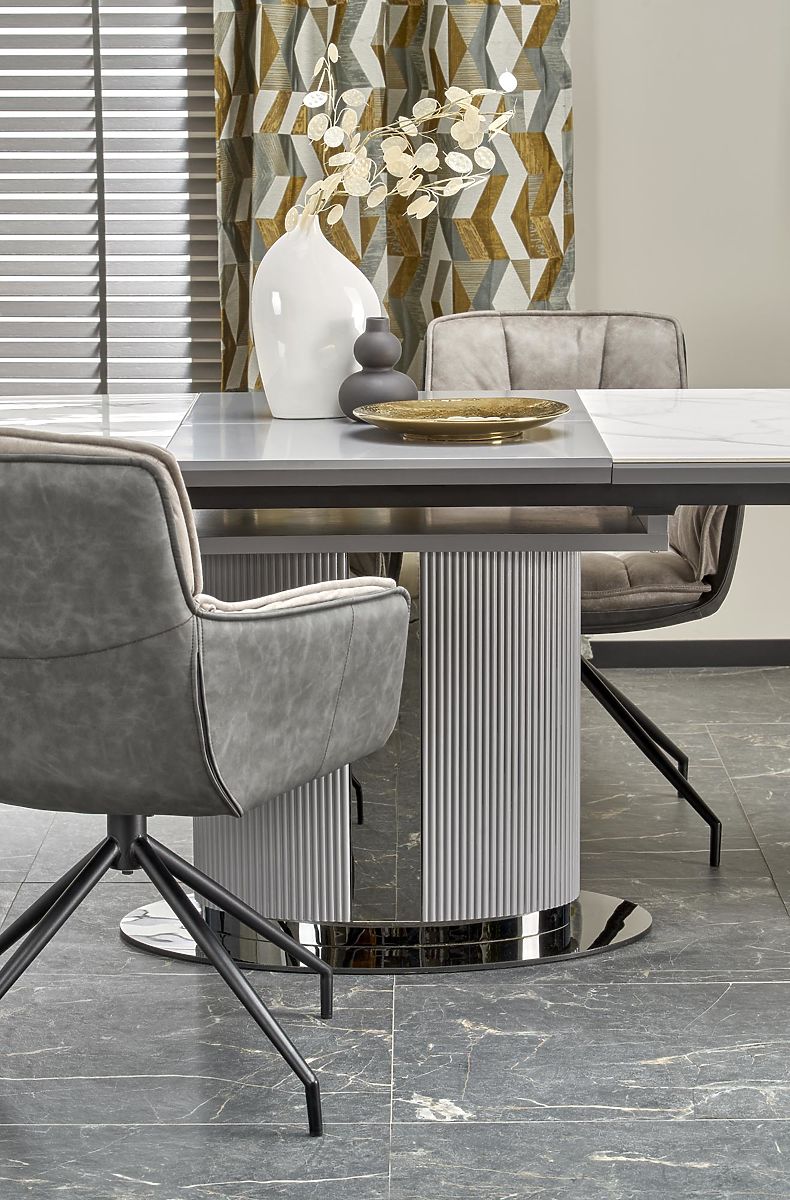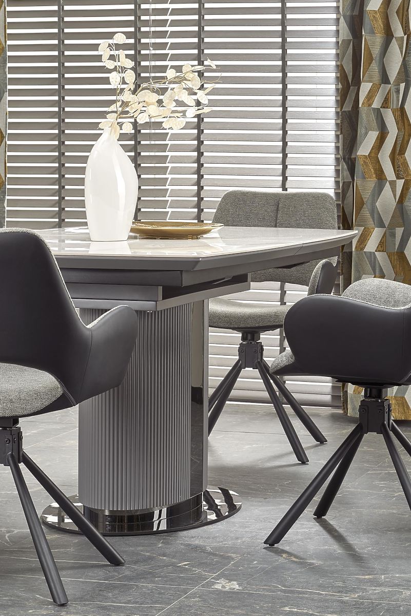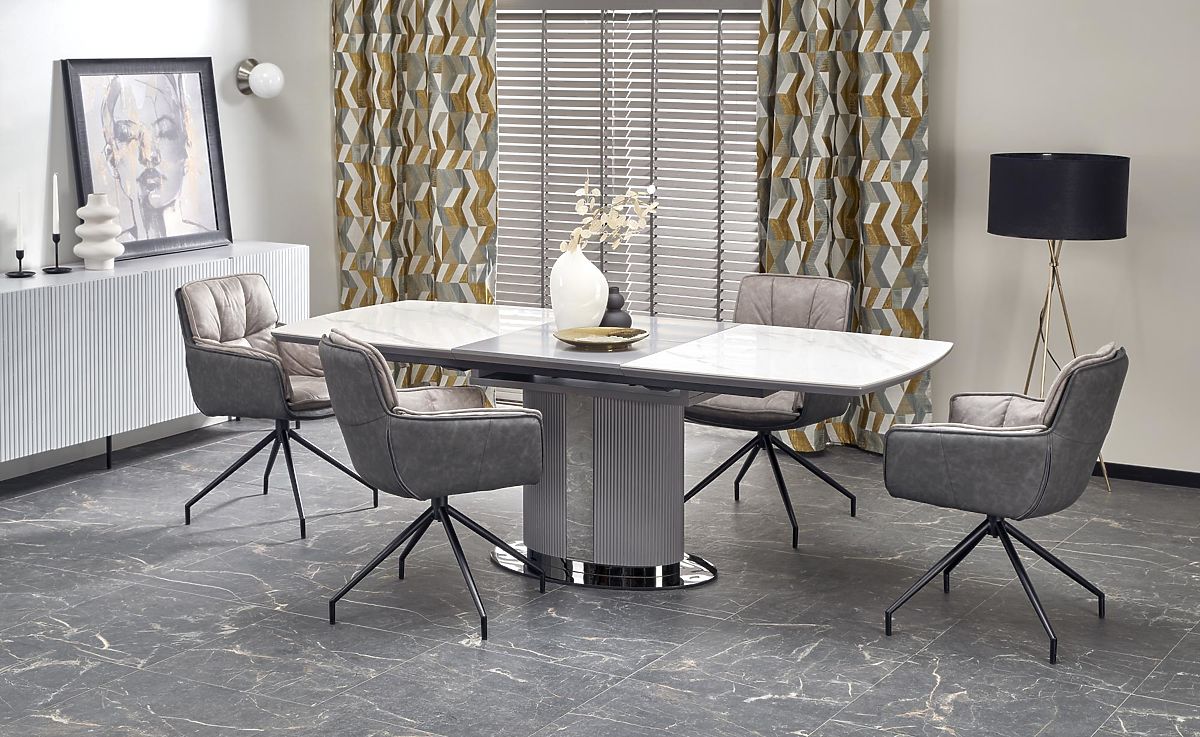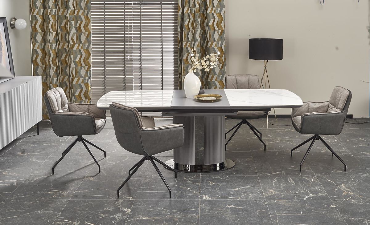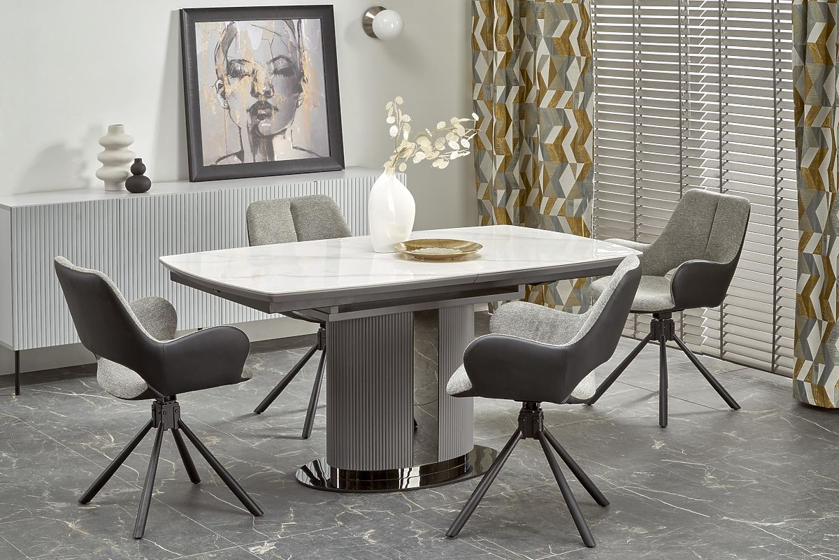 Lukahome.at » Esszimmer und Küche / Esstische / DANCAN ausziehbarer Tisch, weißer Marmor / grau / hellgrau / schwarz (3p=1Stk)