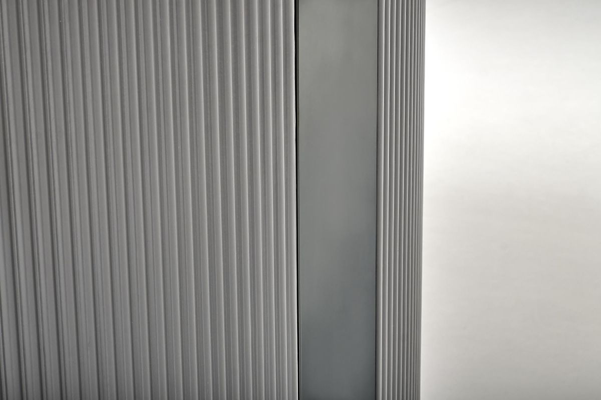 Ausziehbarer Tisch mit weißem Marmor und grauen Akzenten. .. mehr