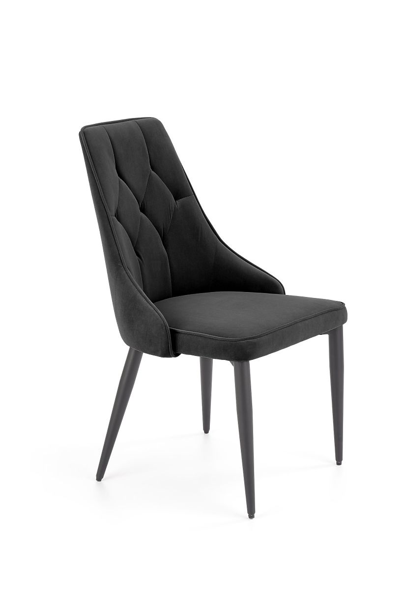 Schwarzer Samtstoffstuhl mit pulverbeschichtetem Stahl. .. mehr