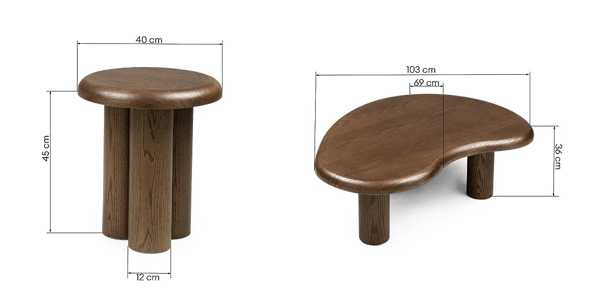 Lukahome.at » Tische und Couchtische / Couchtische / Sirocco Tischset, dunkle Eiche, abgerundete Formen