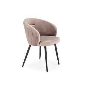 Beiger Samtstoffstuhl mit pulverbeschichtetem Stahlrahmen. .. mehr