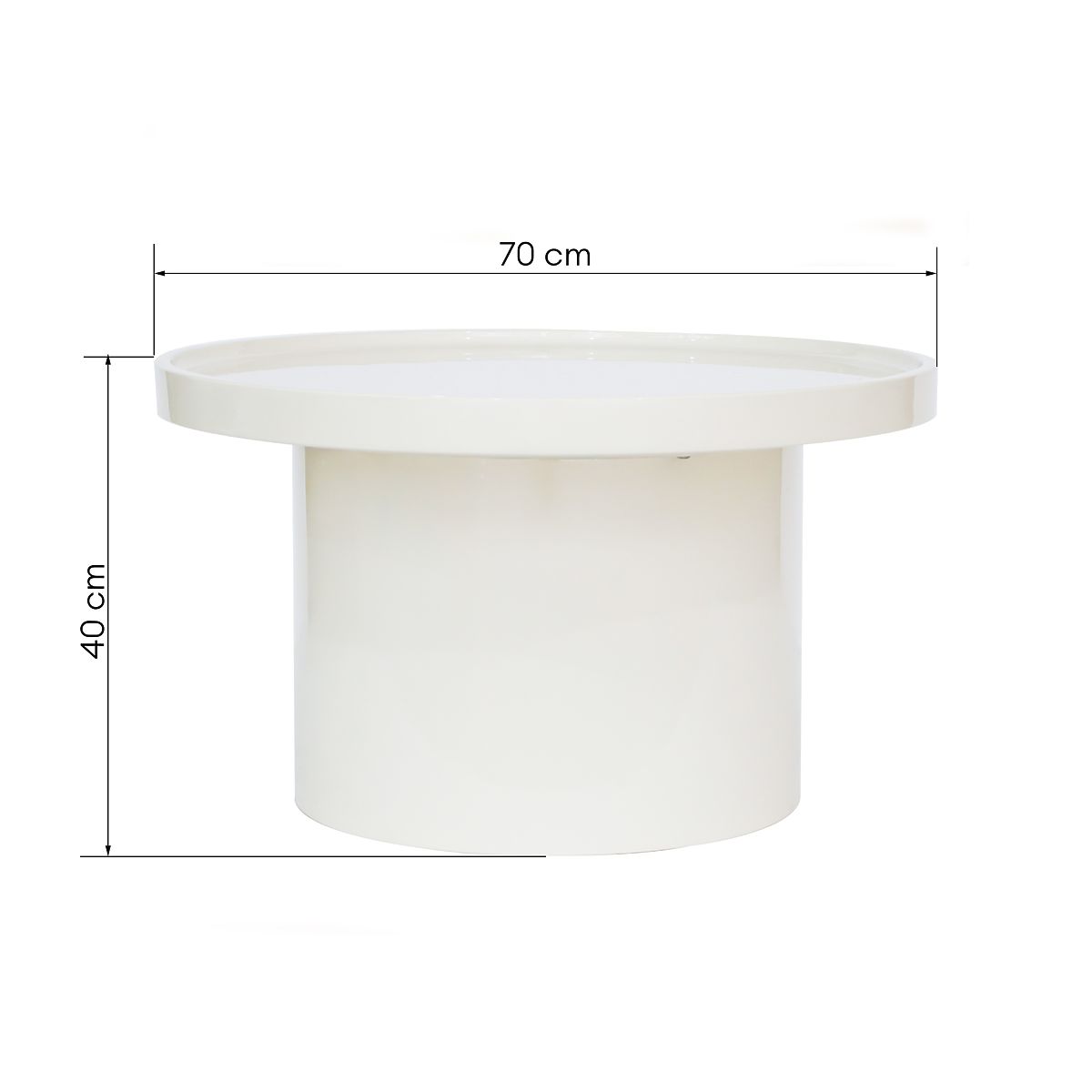 Runder Couchtisch Chia mit glänzender weißer Oberfläche. .. mehr