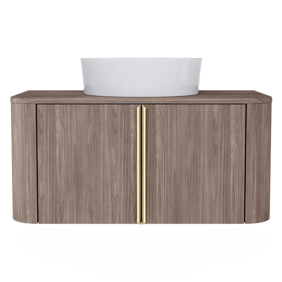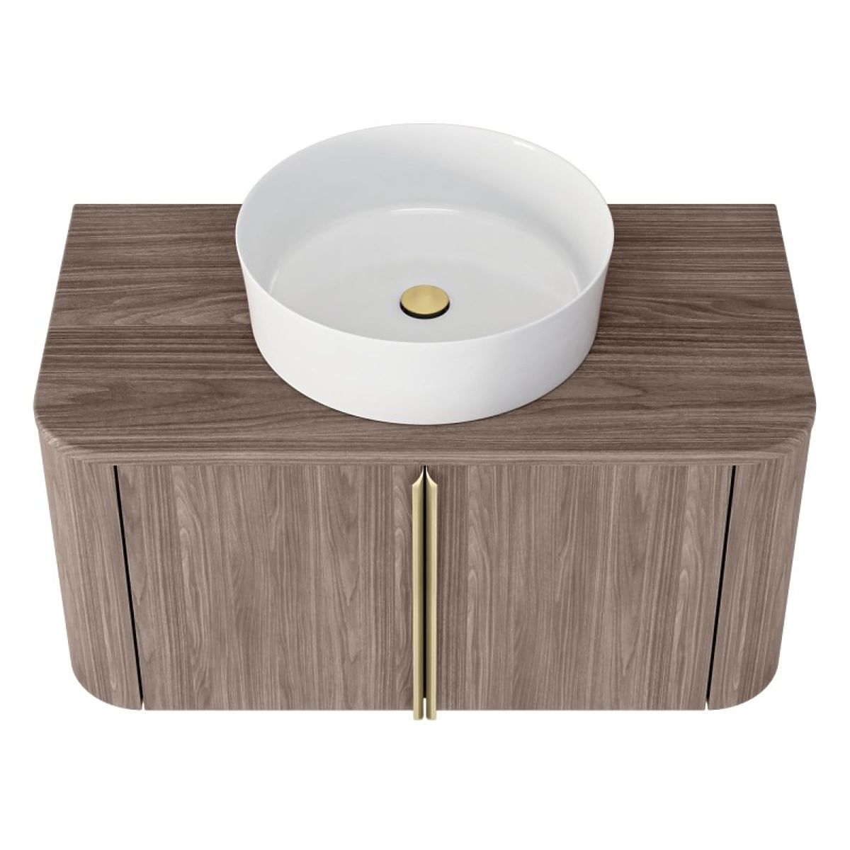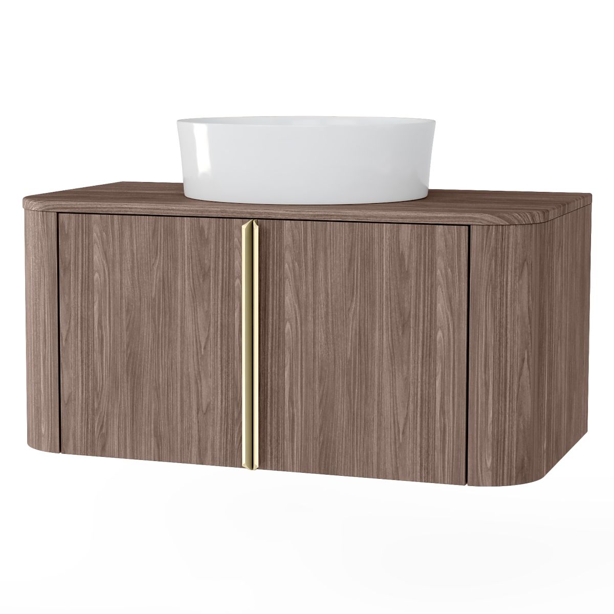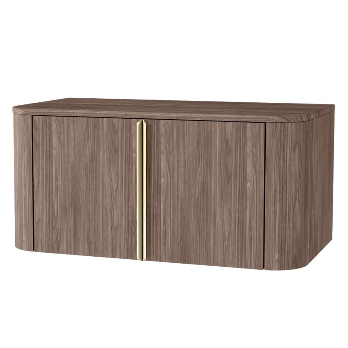 Lukahome.at » Badezimmer und Toilette / Badezimmerschränke / Waschtischunterschrank Bassa 80 cm, Lincoln-Nussbaum, goldene Griffe, abgerundet