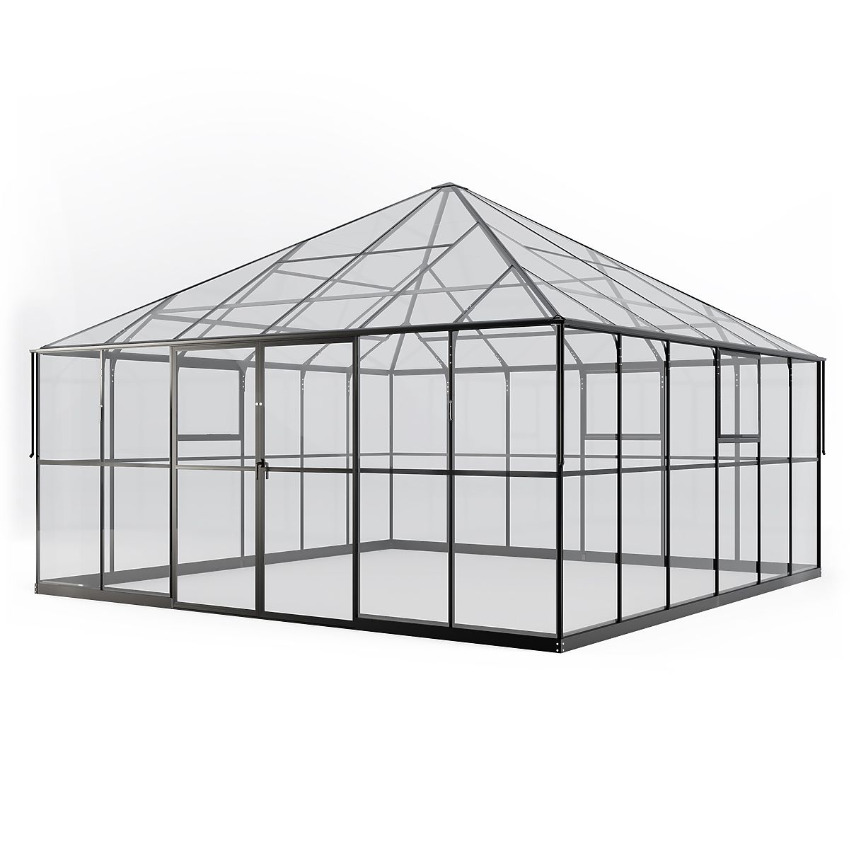 Lukahome.at » Gärten / Pavillons / Gartenorangerie ProGlass Gazebo Large mit Fundament 17,8 m² gehärtetes Glas 4 mm, Aluminium, schwarz