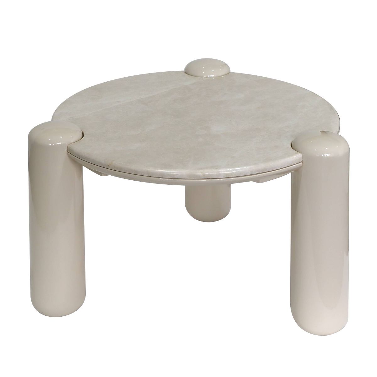 Runder Couchtisch Noemi mit Marmorplatte und hellbeigen Hochglanzbeinen. .. mehr