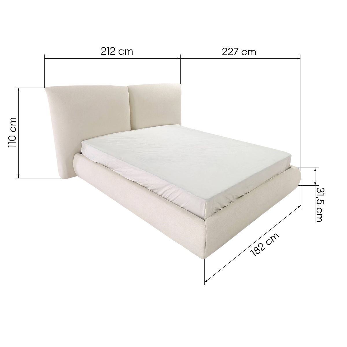 Gepolstertes Bett Yunar mit Stauraum und hohem Kopfteil. .. mehr