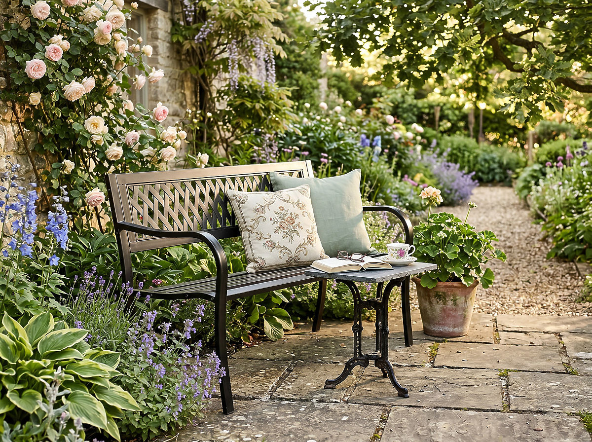 ✅Vielseitigkeit des Designs: Das klassische Muster sorgt dafür, dass die Bank zu verschiedenen Außenbereichen passt.