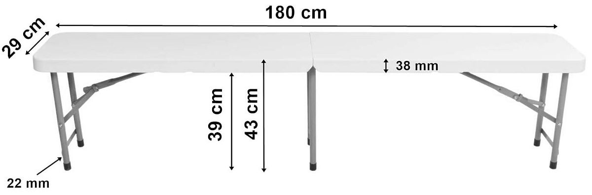 Erleben Sie Funktionalität und Komfort in jeder Situation – die klappbare Cateringbank 180 cm weiß ist die ideale Lösung für Outdoor-Partys, Familienfeiern, Ausflüge außerhalb der Stadt oder den täglichen Gebrauch im Garten. Die klappbare Konstruktion, der wasserabweisende Sitz, der einfache Transport und die Tragfähigkeit von bis zu 250 kg sind nur einige ihrer Vorteile – sie bietet Komfort, Platzersparnis und die Gewissheit, dass Ihre Gäste einen stabilen und bequemen Sitzplatz haben.