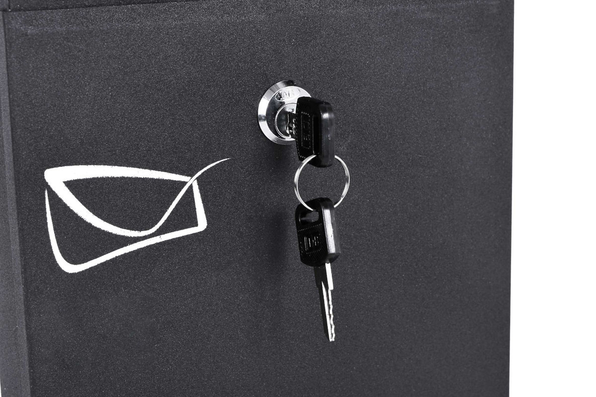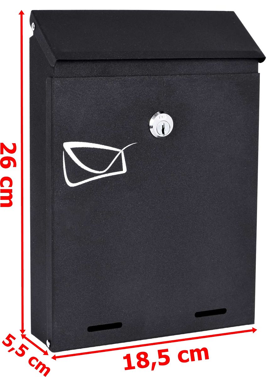 Moderner und funktionaler Briefkasten Odvin in Anthrazit, entworfen mit Blick auf Langlebigkeit und Eleganz. Die kompakten Abmessungen von 26 x 18,5 x 5,5 cm und der Briefschlitz von 18 x 2 cm eignen sich ideal für kleinere Räume. Hergestellt aus strapazierfähigem, galvanisiertem Stahl mit Pulverbeschichtung, geeignet für die Montage im Freien und im Innenbereich. Sicher durch ein Schloss mit Schlüssel – das Set enthält 2 Schlüssel und Montagematerial. Solidität und Stil in einem!