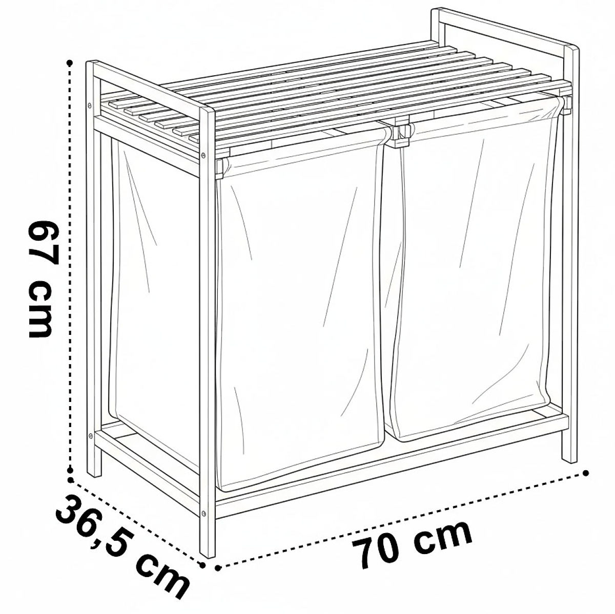 Bambus-Wäsche- oder Spielzeugkorb HANOI 2 Fächer Bestimmung: Badezimmer, Kinderzimmer | Farben: Weiß und natürlicher Bambus Der Bambus-Wäschekorb Hanoi ist ein ästhetischer und geräumiger Korb, der viel Kleidung aufnehmen kann. Hergestellt aus geschliffenem Bambus, hat er keine scharfen Kanten, ist angenehm glatt und sorgfältig verarbeitet. Das obere Regal kann als Platz für Badezimmerzubehör, Waschmittel, aber auch als Platz für Dekorationen oder Duftkerzen dienen. Der Korb hat Schienen, die das Befüllen und Entleeren des Textilbeutels erleichtern. Dank ihnen kann der gesamte Beutel herausgezogen und transportiert werden. Hanoi lässt sich ohne Bohren und spezielle Werkzeuge zusammenklappen. Der Zusammenbau dauert buchstäblich einen Moment und alles, was Sie für die Montage benötigen, finden Sie im Paket. Produkteigenschaften Korb: Bambusholz Einsatzmaterial: Polyester Kapazität: 80L ästhetisch verarbeitet großes Regal für Zubehör einfaches Befüllen und Entleeren dank Schienen Möglichkeit, den Einsatz zu waschen Produktabmessungen Höhe: 67 cm Breite: 70 cm Tiefe: 36,5 cm Weitere Informationen Die angegebenen Farben sind Richtwerte - sie können aufgrund unterschiedlicher Monitoreinstellungen und des Fotobearbeitungsprozesses von den tatsächlichen abweichen. Die tatsächlichen Abmessungen können von den oben genannten abweichen. Die Fehlertoleranz kann +/- 5% betragen. Marke: Gockowiak Produktcode: 5902340317358 EAN-Code: 5902340317358 Farbe: Weiß Höhe: 67 cm Breite: 70 cm Material des Korbes: Bambus Material des Beutels: Polyester