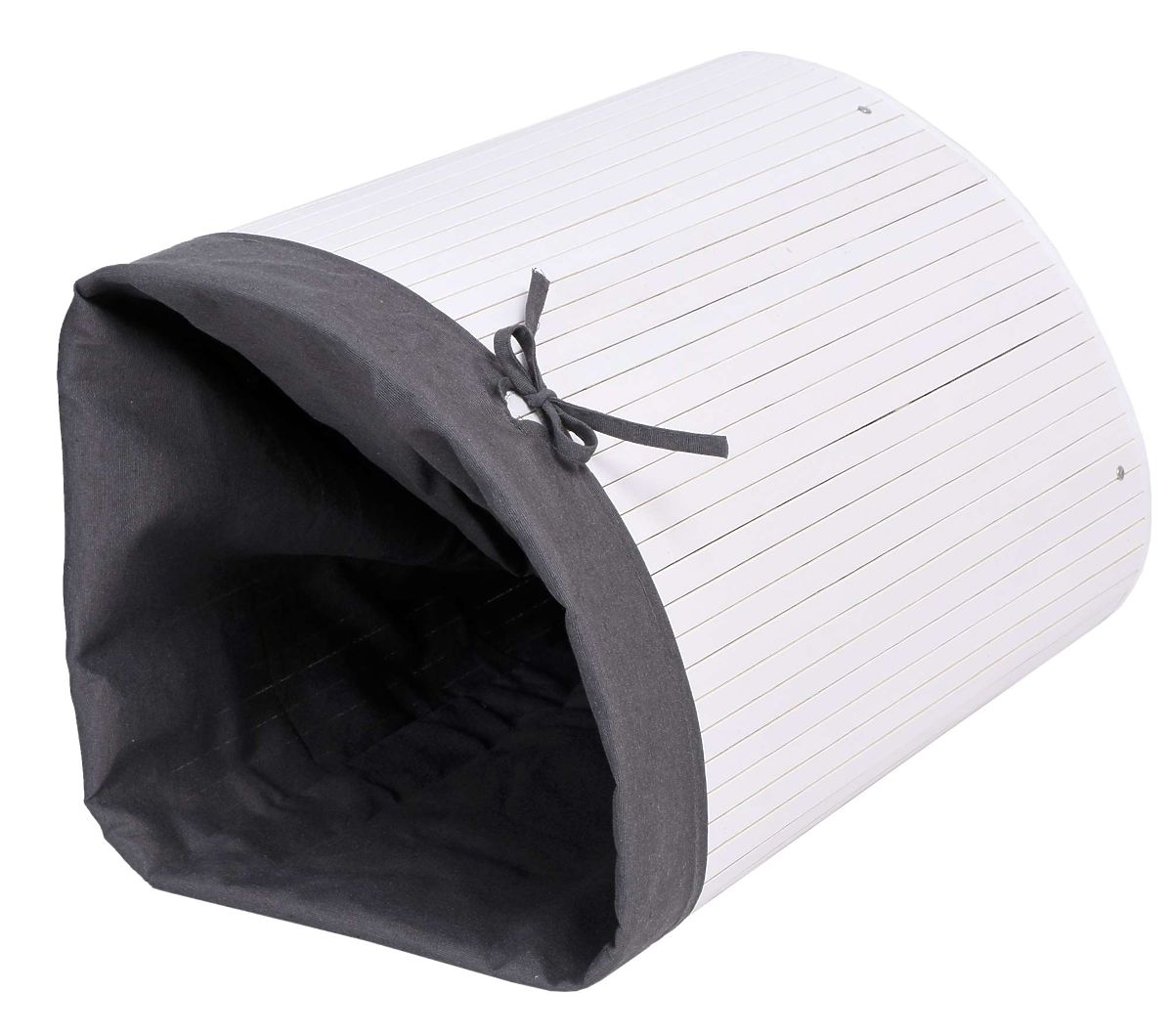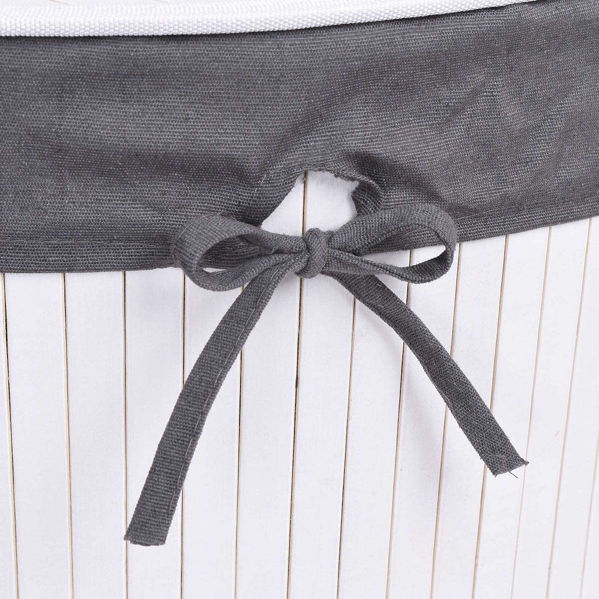 Eckiger Wäschekorb aus Bambus mit Deckel in Weiß-Grau