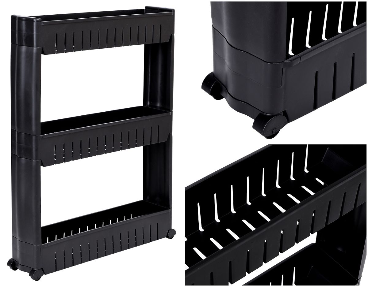 Der mobile Schrank ist ideal für enge Räume wie Küche oder Badezimmer. Seine modulare Konstruktion aus robustem Kunststoff ermöglicht eine einfache Anpassung an die Bedürfnisse – die Regalböden können hinzugefügt oder entfernt werden. Dank der kompakten Abmessungen passt er hervorragend zwischen Schrank und Kühlschrank, Waschmaschine oder an andere schwer zugängliche Stellen. Das Küchenregal eignet sich perfekt zur Aufbewahrung von Gewürzen, Küchenutensilien, Kosmetika, Reinigungsmitteln und vielen anderen notwendigen Dingen. Die Mobilität wird durch vier Rollen gewährleistet, die es ermöglichen, den Badezimmerschrank auf Rollen leicht dorthin zu bewegen, wo er benötigt wird.