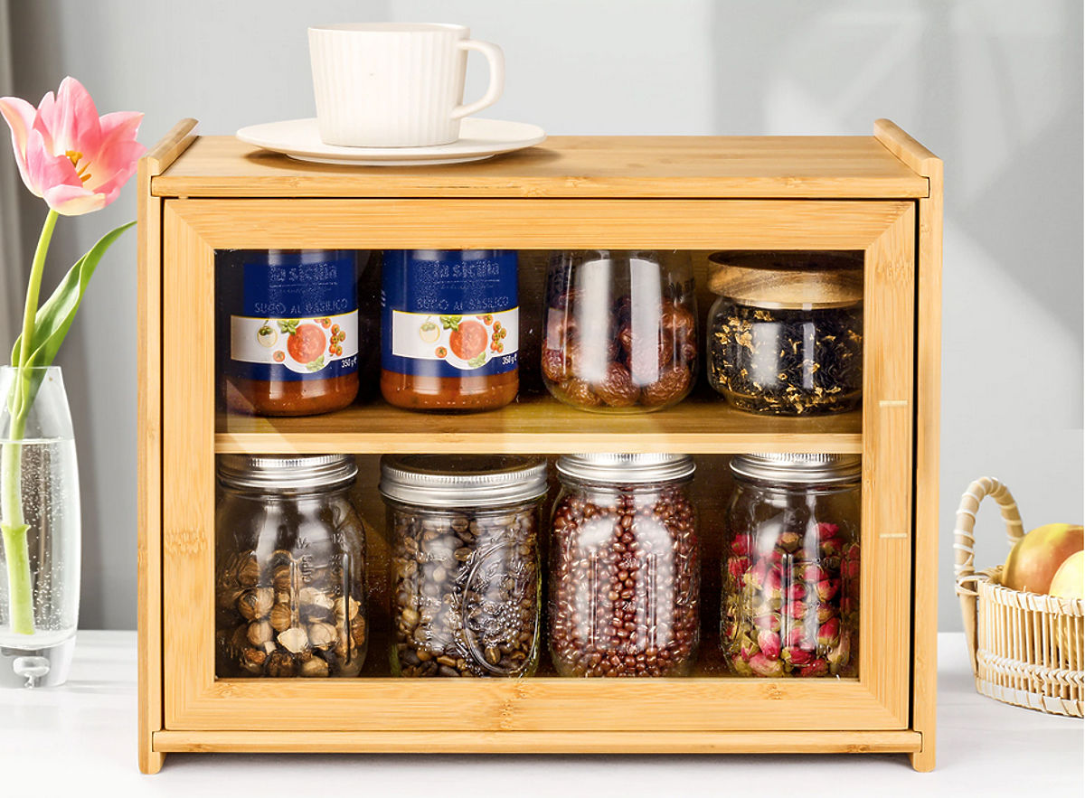 Zweistufiger Brotkasten aus 100% Bambusholz mit Plexiglasfenster. .. mehr