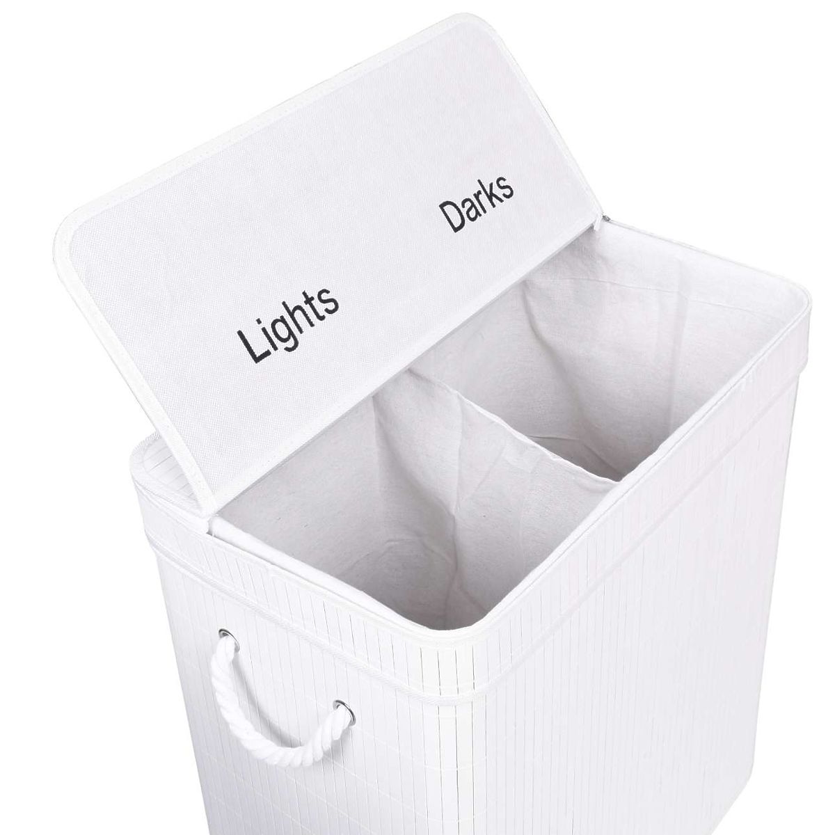Bambus-Wäschekorb mit 100L Kapazität und zwei Fächern für helle und dunkle Wäsche. .. mehr