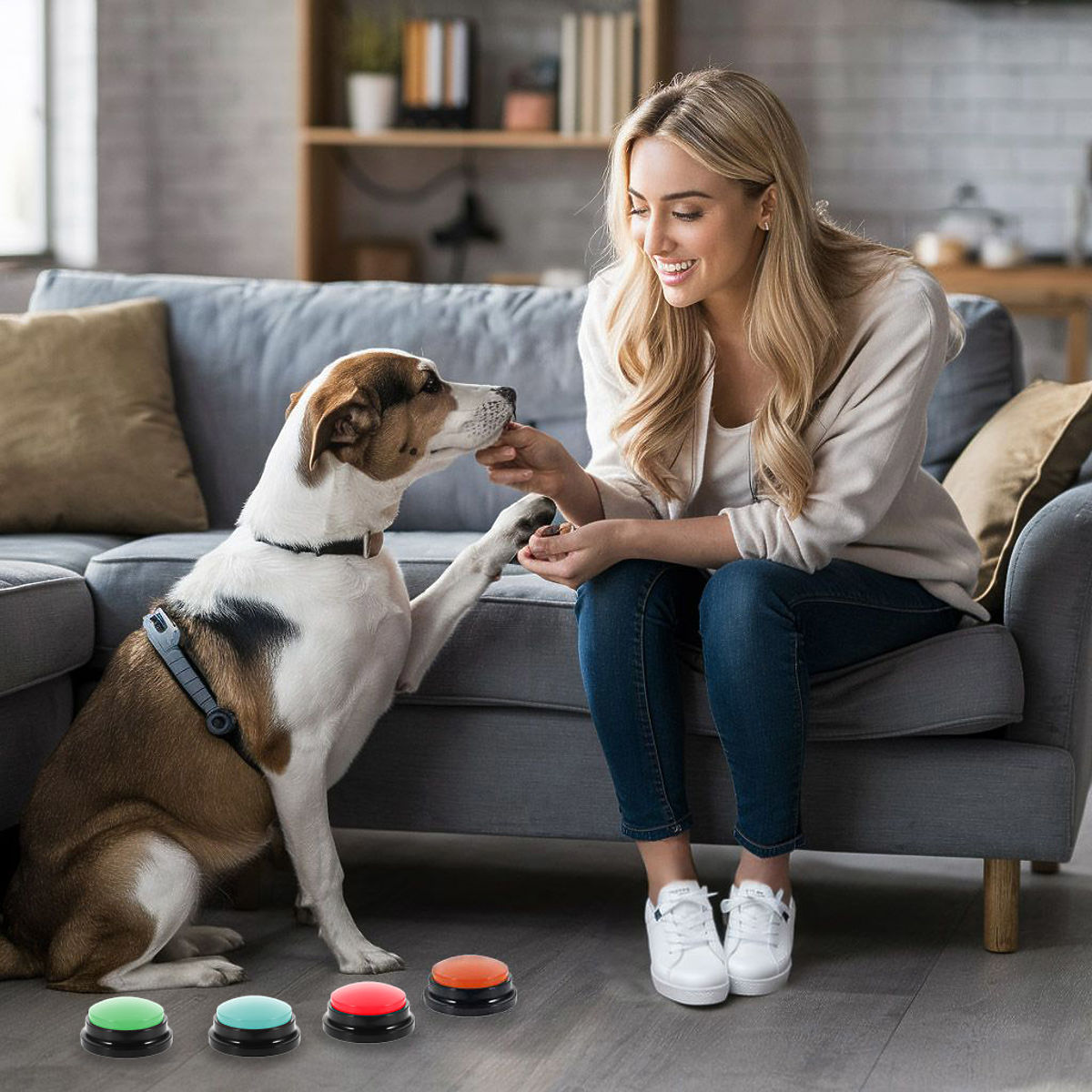 Das Tier lernt schnell, was der zugewiesene Befehl für die jeweilige Taste bedeutet. Dies lehrt den Hund, richtig mit dem Besitzer zu kommunizieren und sorgt gleichzeitig für viel Lachen!