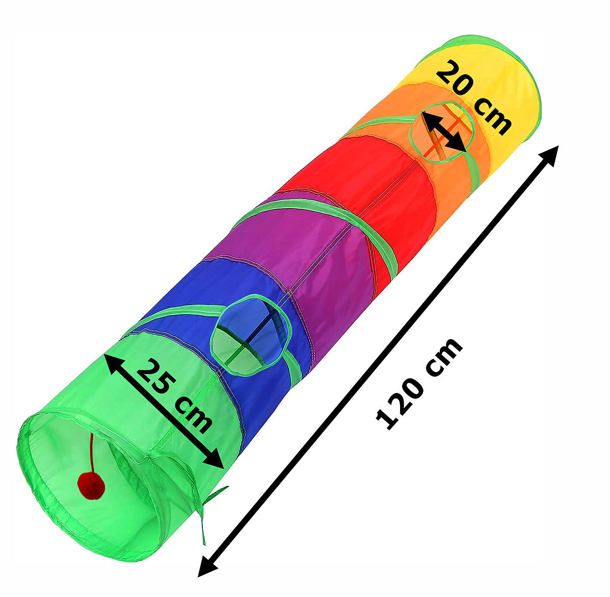 Der Feder-Tunnel für Katzen ist ein unverzichtbares Spielzeug, das Ihrem Haustier viele Stunden Freude bereitet. Es weckt seine Neugier und regt zur Aktivität an. Die raschelnden Geräusche des Tunnels wecken zudem das Interesse der Kätzchen und laden zum Spielen ein. Der Tunnel mit zwei Fenstern bietet großen Spaß und kann gleichzeitig als sicherer Rückzugsort dienen, in dem sich Ihre Katze ausruhen und sicher fühlen kann. Ob zu Hause oder im Garten, dieser Tunnel bewährt sich perfekt. An einer Seite befindet sich ein weiteres Spielzeug zum Aufhängen, das mit einem flauschigen Bommel endet, einem beliebten Spielzeug kleiner Raubtiere. Ein weiterer Vorteil ist seine Größe - 120 cm nehmen nicht viel Platz im Haus ein und bieten gleichzeitig Schutz und Spaß für mehrere Katzen gleichzeitig. Der Tunnel lässt sich leicht flach zusammenfalten und jederzeit bequem transportieren. Dank eines Durchmessers von 25 cm nimmt er sehr wenig Platz ein, sodass Sie ihn problemlos überallhin mitnehmen können. Es ist das perfekte Geschenk für einen Katzenliebhaber!