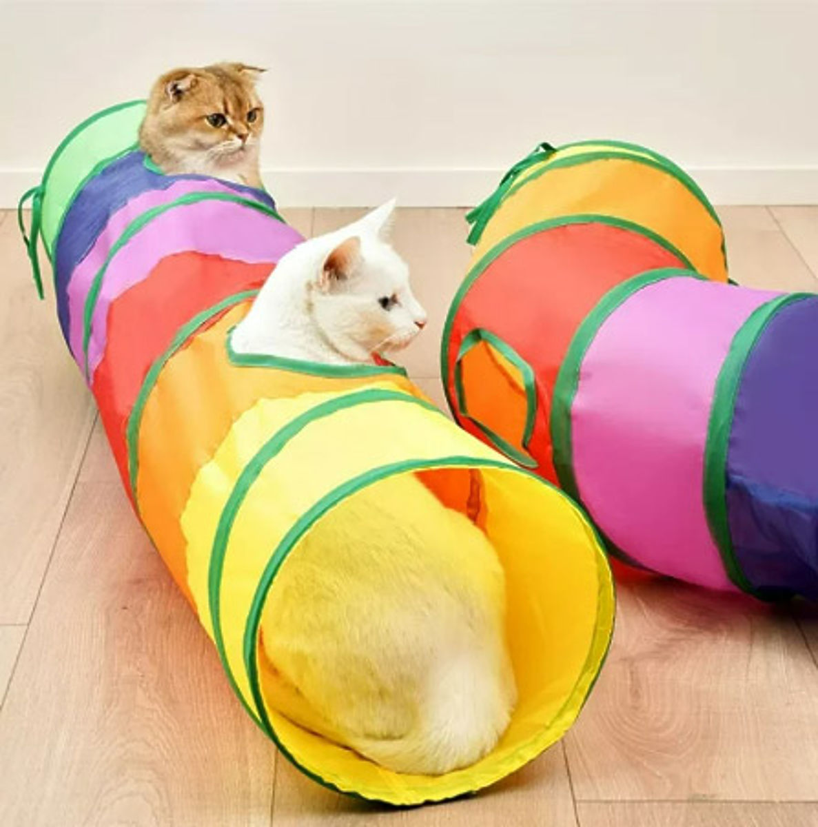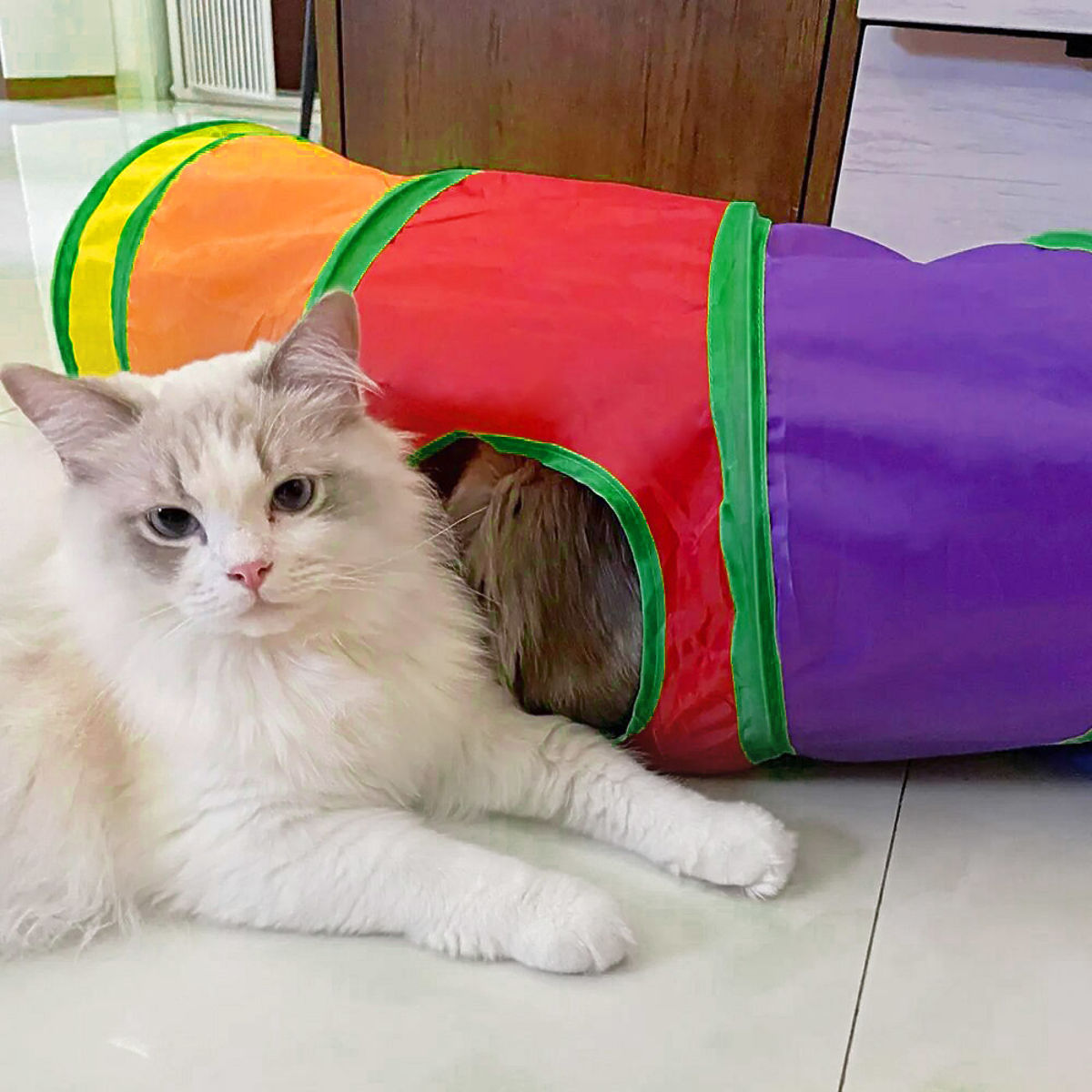 - Der Tunnel fördert die natürliche Neugier der Katze