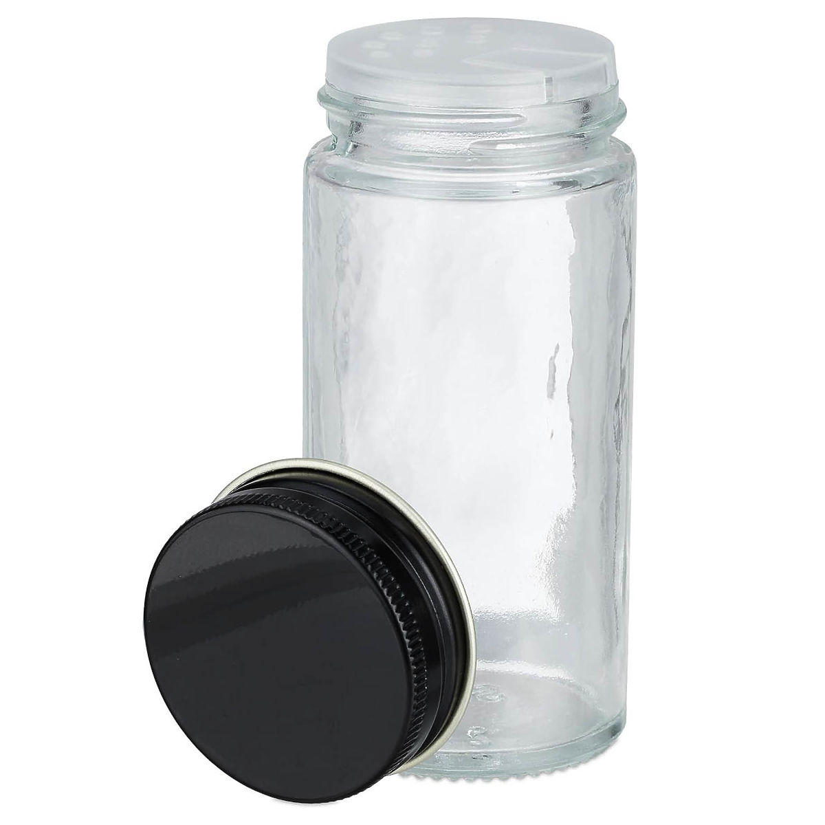 Hergestellt aus starkem und haltbarem Glas. Sie funktionieren im 2-in-1-System. Sie können Gerichte auf zwei Arten würzen, entweder mit klassischen Löchern oder indem Sie den Deckel öffnen und eine größere Menge Gewürze einfüllen. Klassische Löcher eignen sich besser für gemahlene Gewürze, und der Deckel für ganze wie Pfeffer, Piment usw.