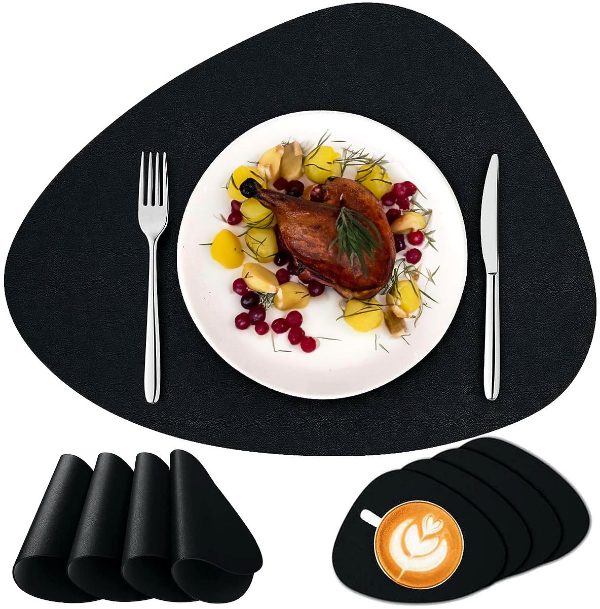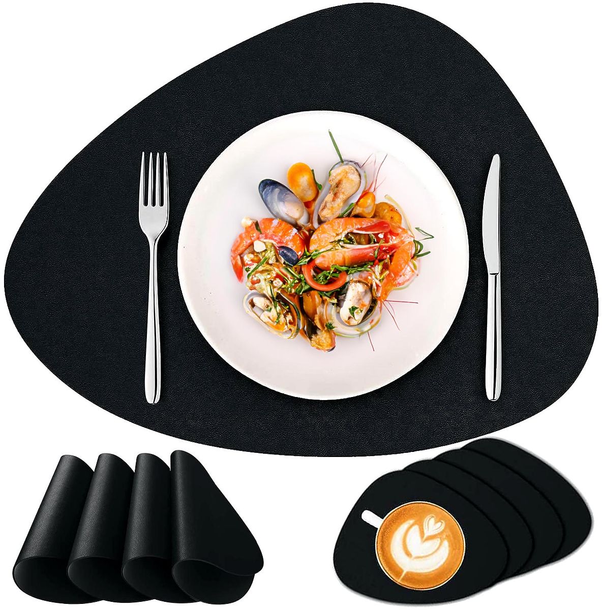 Set von 8 Tischunterlagen TRIVAL BLACK Anzahl der Unterlagen: 4 große und 4 kleine | Farbe: schwarz