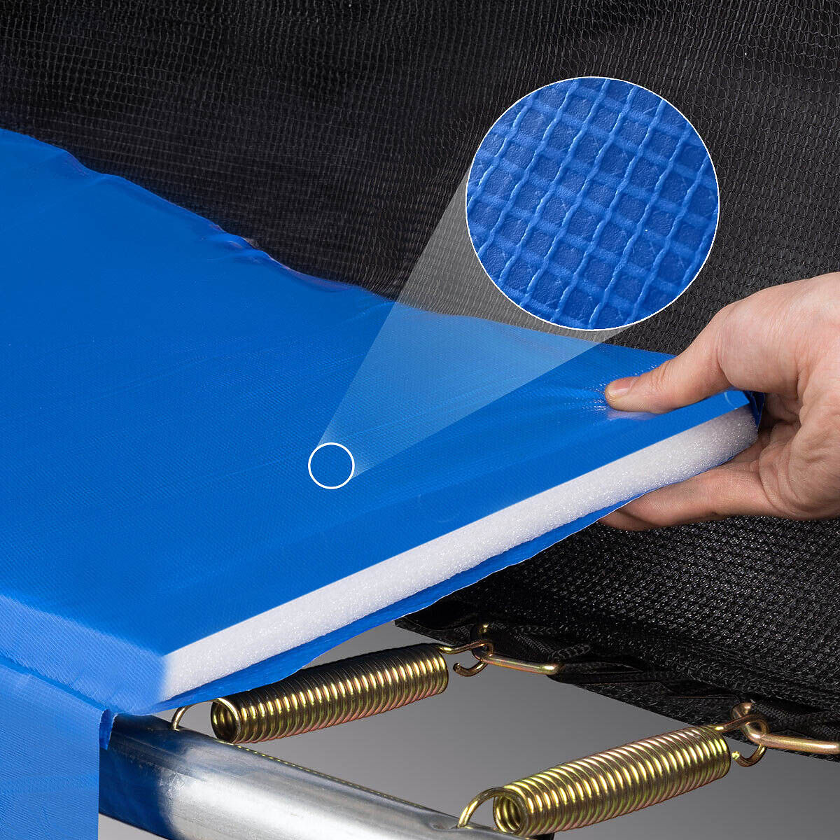 Trampolin mit Sicherheitsnetz und Leiter HENZEN 305 cm blau FT10 Modell: HENZEN | Farbe: schwarz / blau ➡️Robust, langlebig und sicher Das Henzen Trampolin ist eine ausgezeichnete Wahl für alle, die Spaß an der frischen Luft lieben. Hergestellt aus hochwertigen Materialien, garantiert es nicht nur langanhaltende Haltbarkeit, sondern auch Sicherheit bei der Nutzung. Dank seiner robusten Konstruktion und zahlreichen Sicherheitsmerkmalen erfüllt das Trampolin die höchsten Qualitäts- und Sicherheitsstandards, was es zur idealen Wahl sowohl für Kinder als auch für Erwachsene macht. ✔️Robuste stabile Konstruktion - Der Rahmen besteht aus strapazierfähigem, galvanisiertem Stahl, was außergewöhnliche Widerstandsfähigkeit und eine lange Lebensdauer des Produkts gewährleistet. Trotz seiner robusten Konstruktion ist es relativ leicht, wiegt nur 30 kg, was das Tragen und Lagern erleichtert. ✔️Seitenschutz - Die Schutzmatte besteht aus Materialien: PVC + PP, was einen soliden Schutz der Seitenkanten bietet. ✔️Starke elastische Matte - Die Hauptmatte besteht aus festem und elastischem Kunststoff mit einem Gewicht von 275g/m2, was das Springen auf dem Trampolin sicher und komfortabel macht. ✔️Doppelreißverschluss mit Leiste und Schnallen - Das Trampolin ist mit einem Doppelreißverschluss mit Leiste und Schnallen zur Netzschließung ausgestattet, was zusätzliche Sicherheit beim Spielen bietet. ✔️Schaumstoffschutz an den Pfosten - Um das Verletzungsrisiko weiter zu minimieren, verfügt das Modell über 6 Schaumstoffschützer, die den Benutzer vor möglichen Verletzungen schützen. ✔️Sicherheitsnormen - Das Produkt erfüllt die Normen: PN-EN71-1, EN 71-2, EN71-3 und EN71-14, was zusätzliche Sicherheit gewährleistet. ✔️Gebogene Seitenpfosten - Die Seitenpfosten sind passend gebogen, um sicherzustellen, dass springende Personen nicht versehentlich mit ihnen in Kontakt kommen. ✔️Hohe Tragfähigkeit - Das Trampolin kann eine maximale Belastung von bis zu 150 kg tragen, was freien Spaß sowohl für Kinder als auch für Erwachsene ermöglicht. ✔️Leiter - Im Lieferumfang ist eine praktische Leiter enthalten, die den Ein- und Ausstieg aus dem Trampolin erleichtert. Kinder müssen nicht vom Trampolin springen. ✔️Geeignete Rahmenhöhe - Der Rahmen befindet sich 55 cm über dem Boden, was sicheres Springen ermöglicht. Produkteigenschaften Rahmenmaterial: Galvanisierter Stahl - wetterfest und langlebige Konstruktion. Material der Schutzmatte: PVC + PP mit einem Gewicht von 260g/m2 - bietet soliden Schutz. Material der Sprungmatte: PP (Polypropylen) mit einem Gewicht von 275g/m2 - für Komfort und Sicherheit beim Springen. Sicherheit: Reißverschluss mit Leiste zur Netzschließung, 6 Schaumstoffschützer und zusätzliche Schnalle zur Netzschließung. Sicherheitsnormen: Erfüllt die Normen PN-EN71-1, EN 71-2, EN71-3, EN71-14. Maximale Belastung: 150 kg - Spaß für Kinder und Erwachsene. Gewicht: Leichte Konstruktion, nur 30 kg - einfache Installation und Transport. Produktabmessungen gesamte Höhe des Trampolins: 245 cm Netzhöhe: 180 cm Rahmenhöhe vom Boden: 65 cm Durchmesser des Trampolins: 305 cm Durchmesser der Sprungmatte: 261 cm Leitergröße: 38x75 cm Dicke der Schutzmatte: 12 mm Breite der Schutzmatte: 22 cm Weitere Informationen Die dargestellten Farben sind als Richtwerte zu betrachten - sie können aufgrund unterschiedlicher Monitoreinstellungen und des Fotoanpassungsprozesses von den tatsächlichen abweichen. Die tatsächlichen Abmessungen können von den oben angegebenen abweichen. Die Fehlertoleranz kann +/- 5% betragen. Marke: xboost EAN-Code: 5905523062847 Farbe: blau Gesamthöhe: 245 cm Gesamtbreite: 305 cm Rahmenmaterial: galvanisierter Stahl Material der Schutzmatte: PVC + PP Verwendung: Spaß für Kinder und Erwachsene Zur Selbstmontage: ja