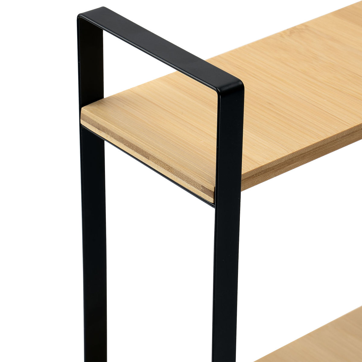 Das Sarita-Regal ist die perfekte Lösung für Liebhaber von Funktionalität und Eleganz in der Küche. Dank der Eckkonstruktion nutzt es den verfügbaren Raum effizient aus, was es zur idealen Wahl für kleinere Räume macht. Hergestellt aus strapazierfähigem, pulverbeschichtetem Stahl und natürlichem Bambusholz, besticht es durch außergewöhnliche Ästhetik und Sorgfalt für jedes Detail. Die matte, schwarze Metallkonstruktion verleiht dem Regal ein modernes, loftartiges Aussehen, und die Beine mit Schutzpolstern sorgen für Stabilität und Schutz der Oberfläche, auf der es steht.