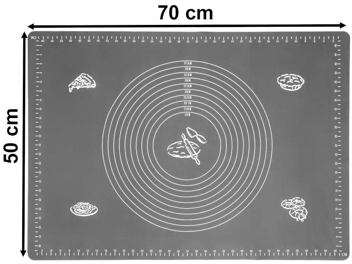 Die Silikon-Arbeitsplatte Selma ist ein praktisches Werkzeug, das die tägliche Arbeit mit Teig erleichtert. Dank des flexiblen Materials müssen Sie sich keine Sorgen über das Anhaften des Teigs machen, und die rutschfeste Oberfläche sorgt für Stabilität auf der Arbeitsplatte, selbst bei intensivem Ausrollen. Die Platte ist leicht, einfach zu lagern und widerstandsfähig gegen Beschädigungen. Ihre stilvolle graphitfarbene Optik passt perfekt in moderne Interieurs und die einfache Konstruktion gewährleistet eine leichte Pflege. Sie ist eine zuverlässige Wahl für alle, die Funktionalität und Ästhetik in der Küche schätzen. ✅ Rutschfeste Oberfläche