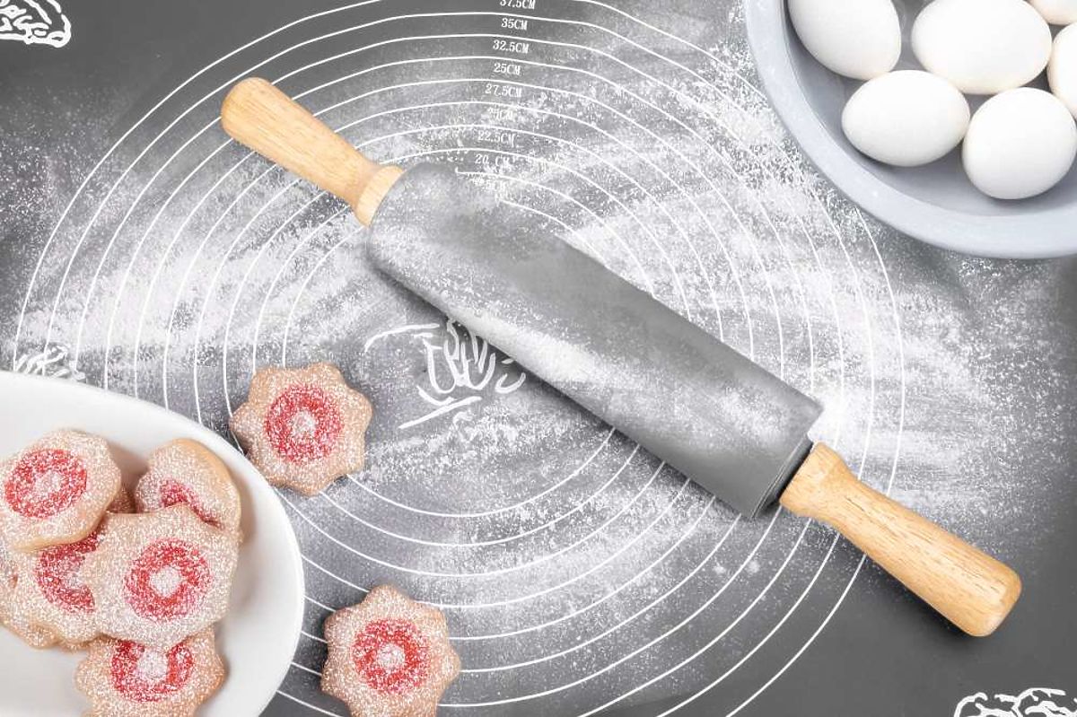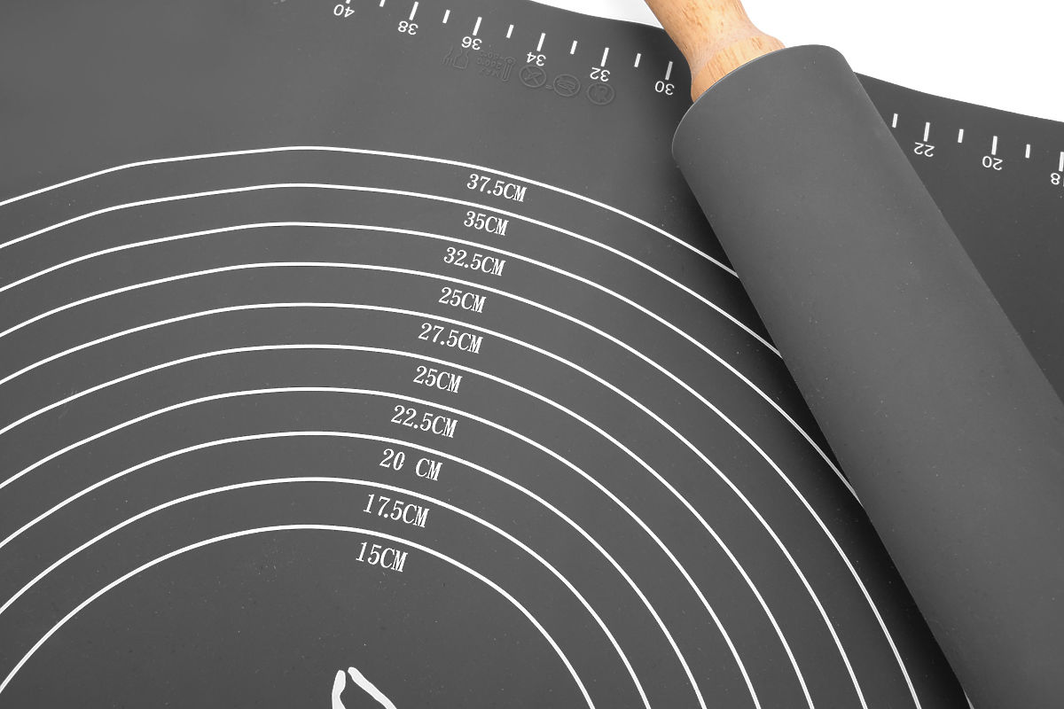 Dank der Eigenschaften von Silikon haftet der Teig nicht an der Arbeitsplatte, was die Notwendigkeit großer Mengen Mehl eliminiert.