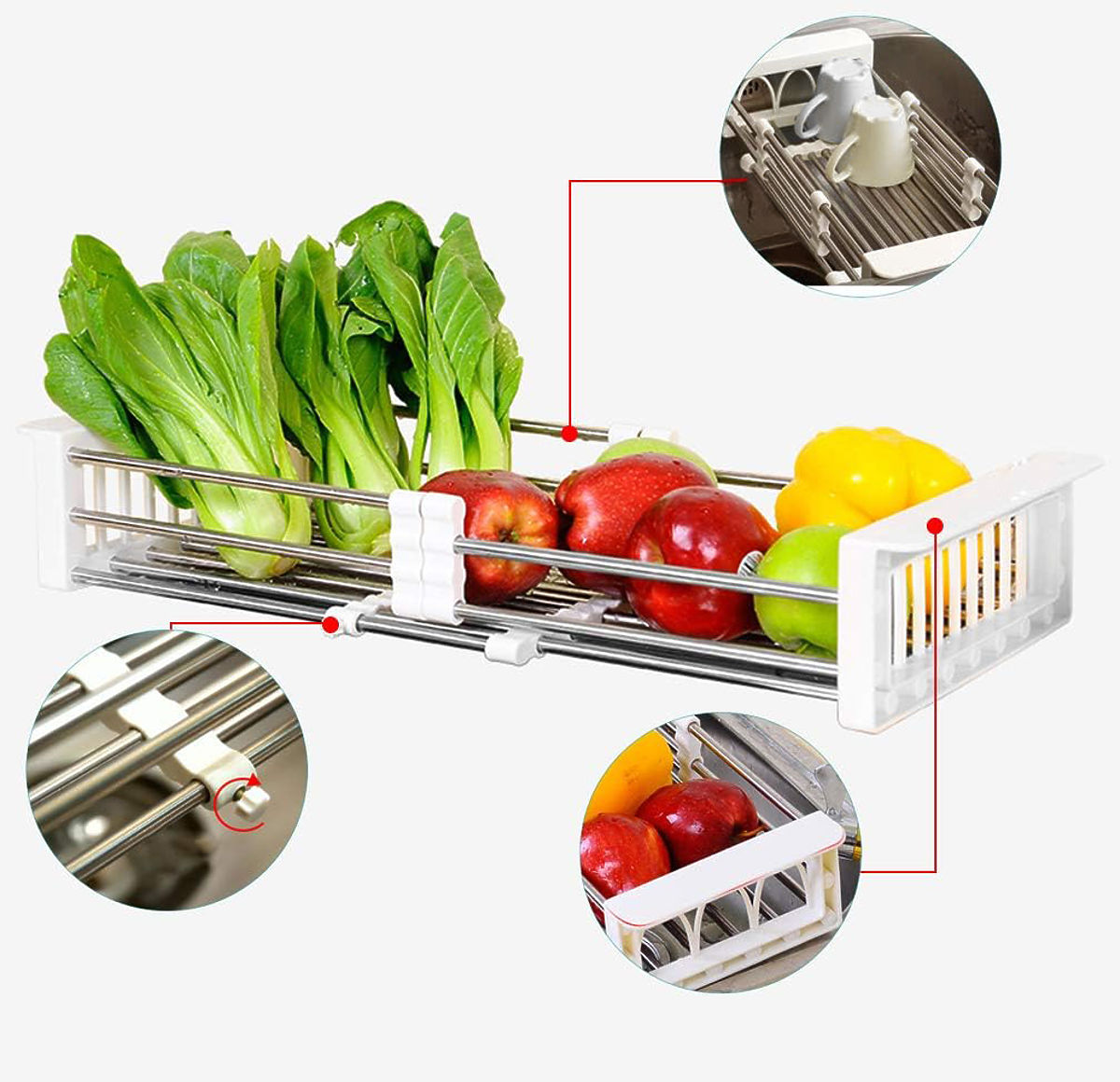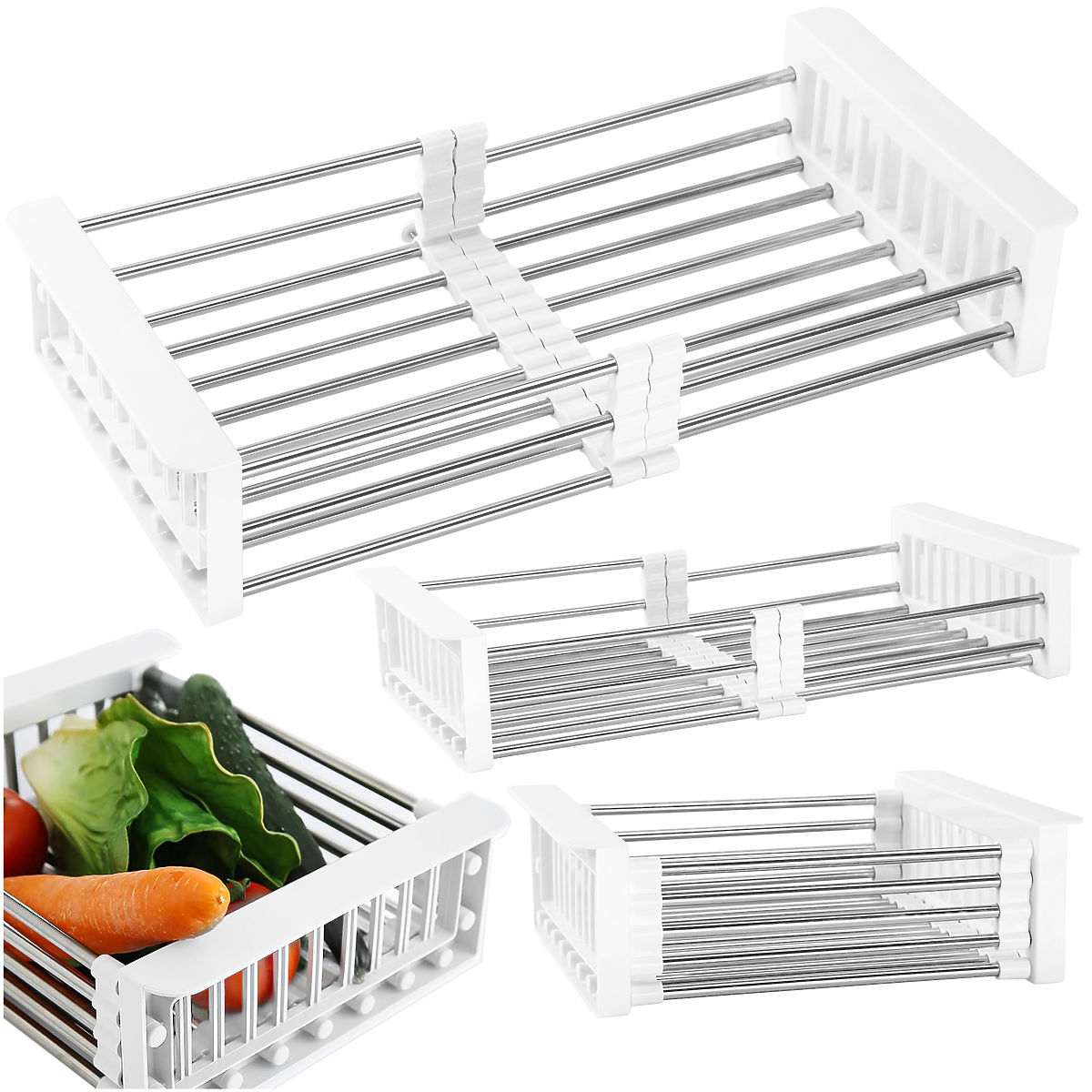 Vielseitiges Abtropfgestell für Gemüse und Geschirr mit einstellbarer Breite. .. mehr