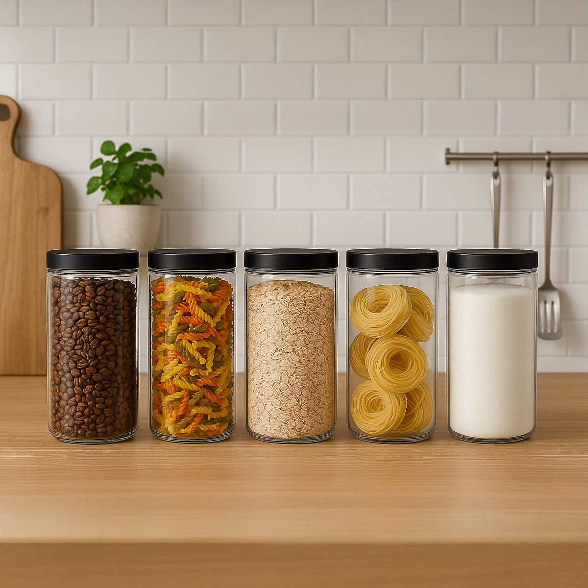 Set aus 9 Behältern FRASCO Modell: FRASCO | Zweck: Organisation in der Küche ⭐️ Komplettes Set – 9 Behälter ⭐️ Große Kapazität – 1,5 Liter ⭐️ Ästhetische und praktische Etiketten – 12 Stück im Set ⭐️ Transparente Wände ⭐️ Minimalistisches Design ⭐️ Einfache Reinigung Das Behälterset Frasco ist die ideale Lösung für diejenigen, die Ordnung, Ästhetik und Funktionalität in der Küche oder Speisekammer schätzen. Dank ihnen können Sie Schüttgüter leicht sortieren, und die Schraubdeckel sorgen dafür, dass Lebensmittel länger frisch bleiben und Sie einen harmonischen Raum schaffen, in dem alles seinen Platz hat. Die transparenten Wände erleichtern die Kontrolle des Inhalts, und die mitgelieferten Etiketten ermöglichen eine intuitive Kennzeichnung jedes Behälters – Schluss mit der Suche nach Mehl, Zucker oder Nudeln. ☑️ Spezifikationen: Anzahl der Behälter im Set: 9 Material: PET Kapazität des Behälters: 1,5 Liter Verschlussart: Schraubdeckel, der Dichtheit und bequeme Nutzung gewährleistet Im Set 12 Stück Etiketten zur Kennzeichnung der Behälter ☑️ Abmessungen: Höhe: 21 cm Durchmesser: 10 cm Durchmesser der Etiketten: 6 cm Weitere Informationen Die dargestellten Farben sind indikativ - sie können aufgrund unterschiedlicher Monitoreinstellungen und des Fotoanpassungsprozesses von den tatsächlichen abweichen. Die tatsächlichen Abmessungen können von den oben angegebenen abweichen. Die Fehlertoleranz kann +/- 5% betragen. Marke: Gockowiak Produktcode: 331859MG EAN-Code: 5902340331859 Farbe: transparent Höhe: 21 cm Breite: 10 cm