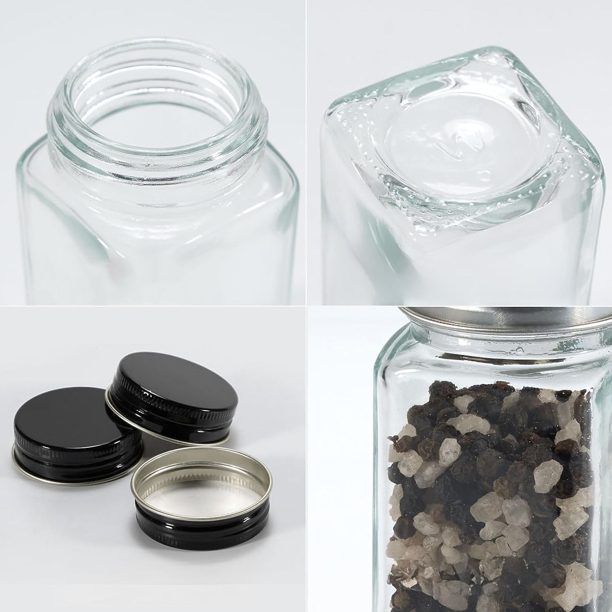 24 Glasbehälter für Gewürze mit Aluminiumdeckel und Kunststoffsieb