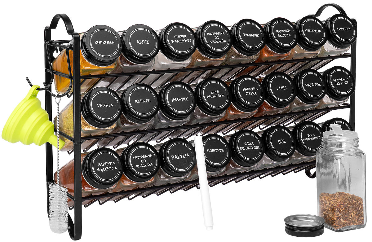 Gewürzregal ENELDO mit 24 Gläsern + 72 Etiketten