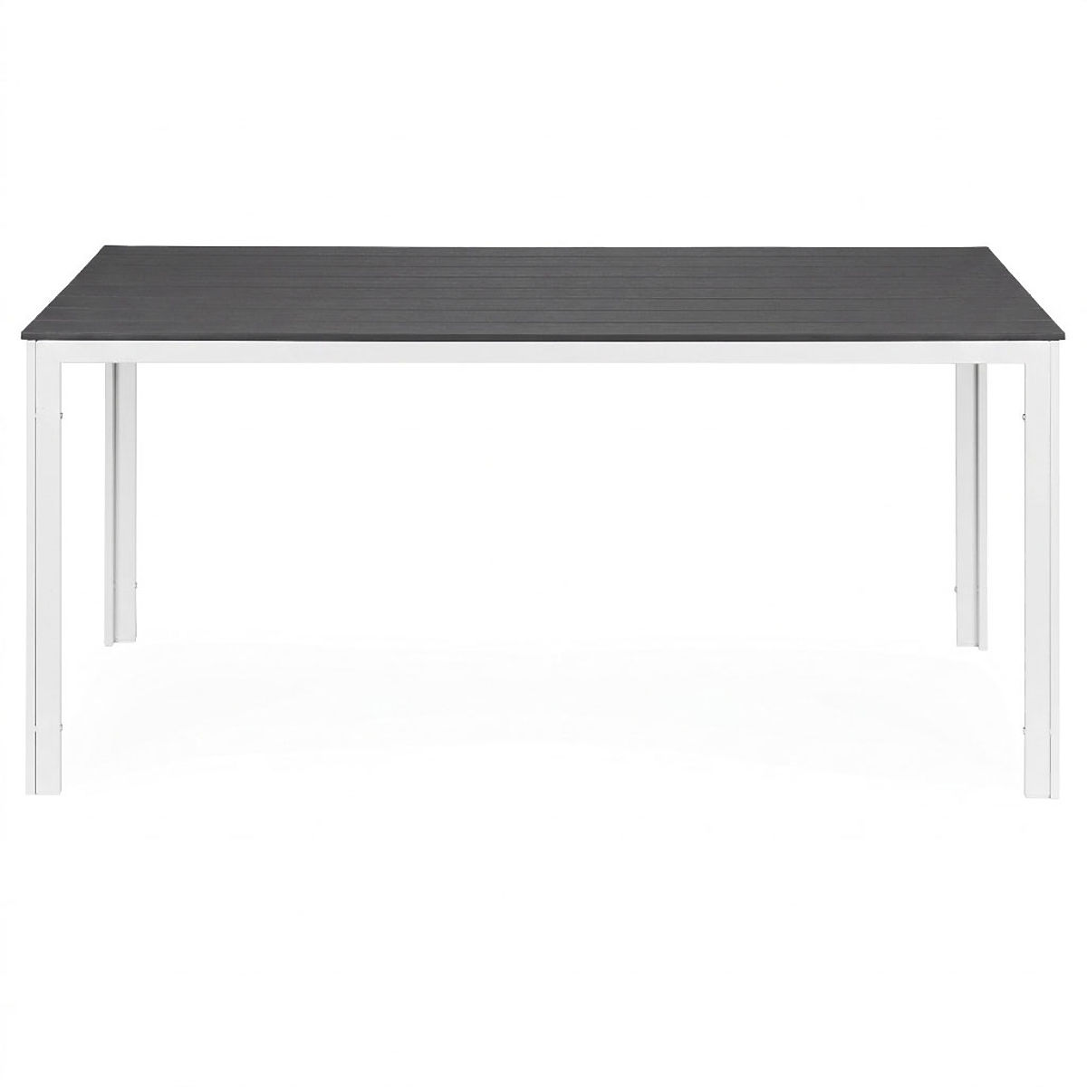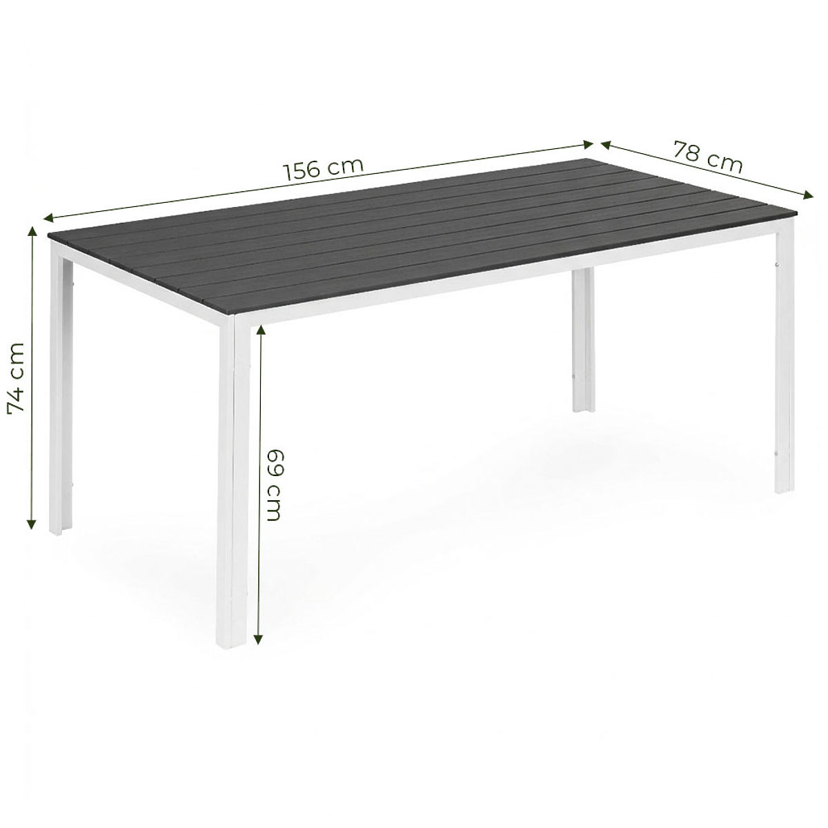 ÄSTHETISCHE UND ROBUSTE TISCHPLATTEDie Tischplatte besteht aus einem speziellen Polywood-Material, das sich durch Wetterbeständigkeit auszeichnet. Ihre Form und Textur imitieren natürliches Holz und verleihen dem Ganzen einen eleganten, zeitlosen Charakter. Kleine Lücken zwischen den Platten ermöglichen freien Wasserabfluss bei Regen, was die Funktionalität des Tisches erhöht und seine tägliche Nutzung im Freien erleichtert.