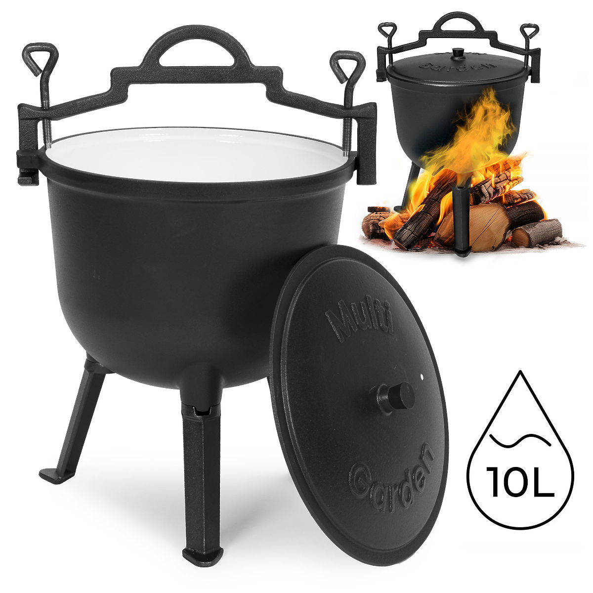 Emaillierter gusseiserner Kessel 10L stehender Jagdtopf Feuerstelle Grill MultiGarden