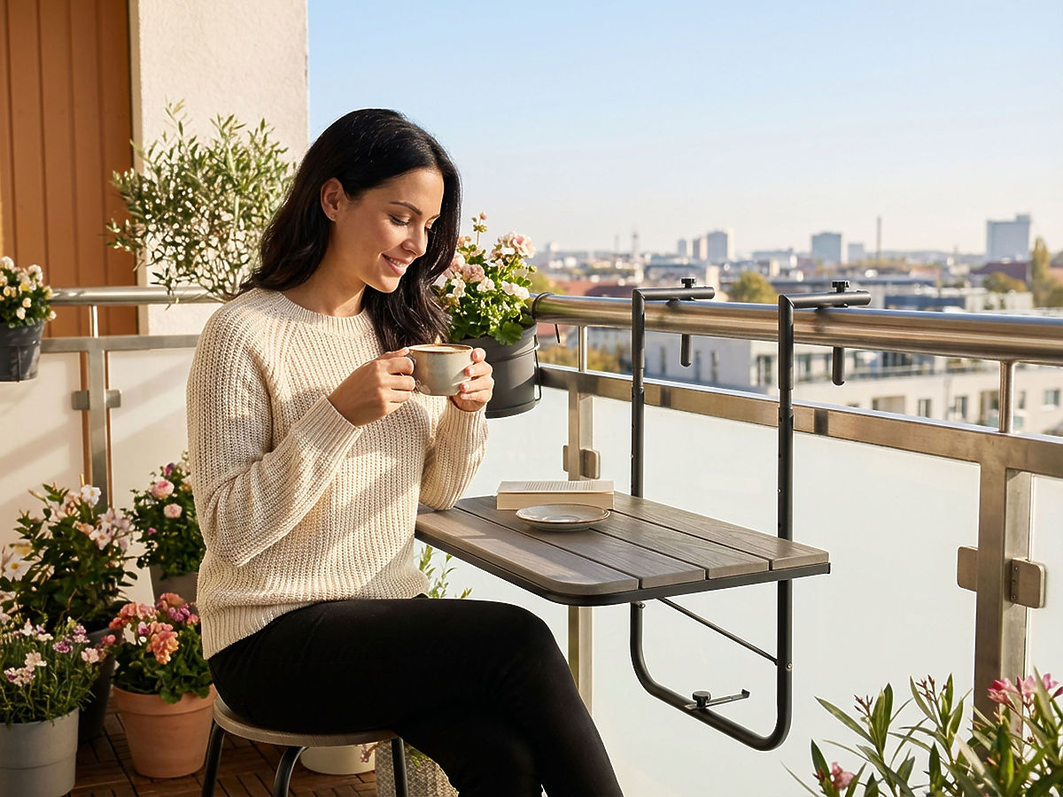 ☀️Balkontisch Aretto grau – Funktionaler Tisch für Kaffee und Entspannung☀️