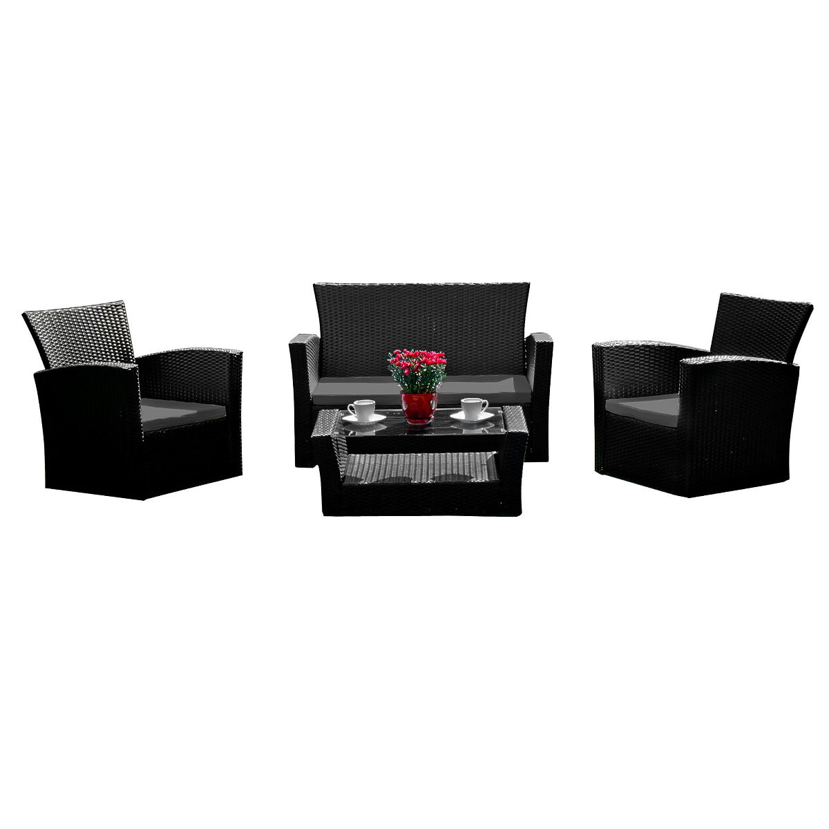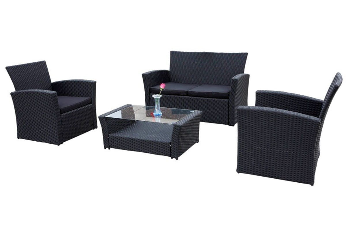 Lukahome.at » Gartenmöbel / Gartensets / Gartenmöbel aus Technorattan (Sofa 123cm, 2 x Sessel + Tisch) UNICO schwarz
