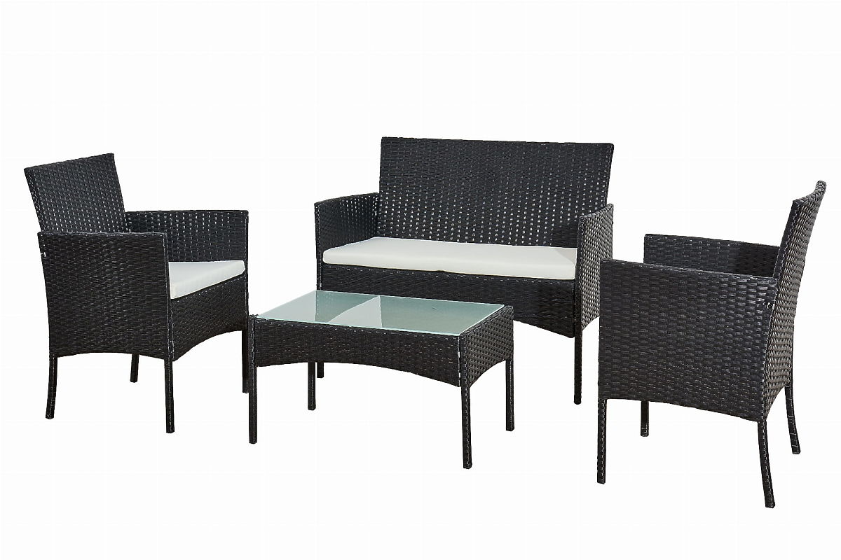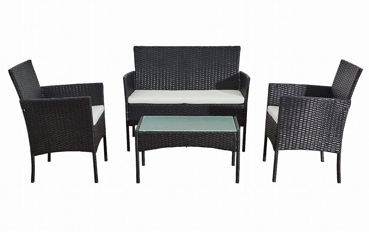 Balkon-Set aus Technorattan (Sofa + 2 x Sessel + Tisch) COMODO schwarz