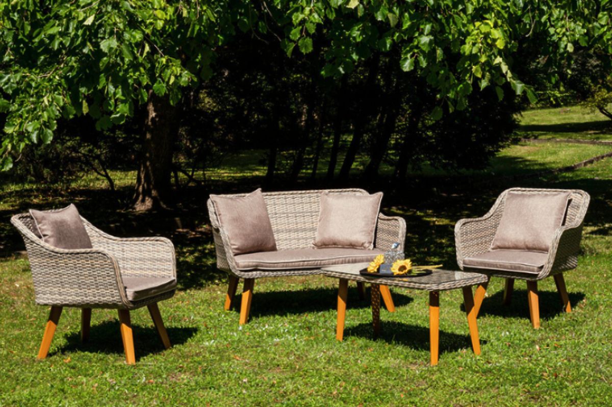 Lukahome.at   »   Gartenmöbel   /   Gartensets   /   Elegantes Garten-Set aus Technorattan (2 x bequemer Sessel, Sofa + Tisch) LARGO grau unregelmäßig