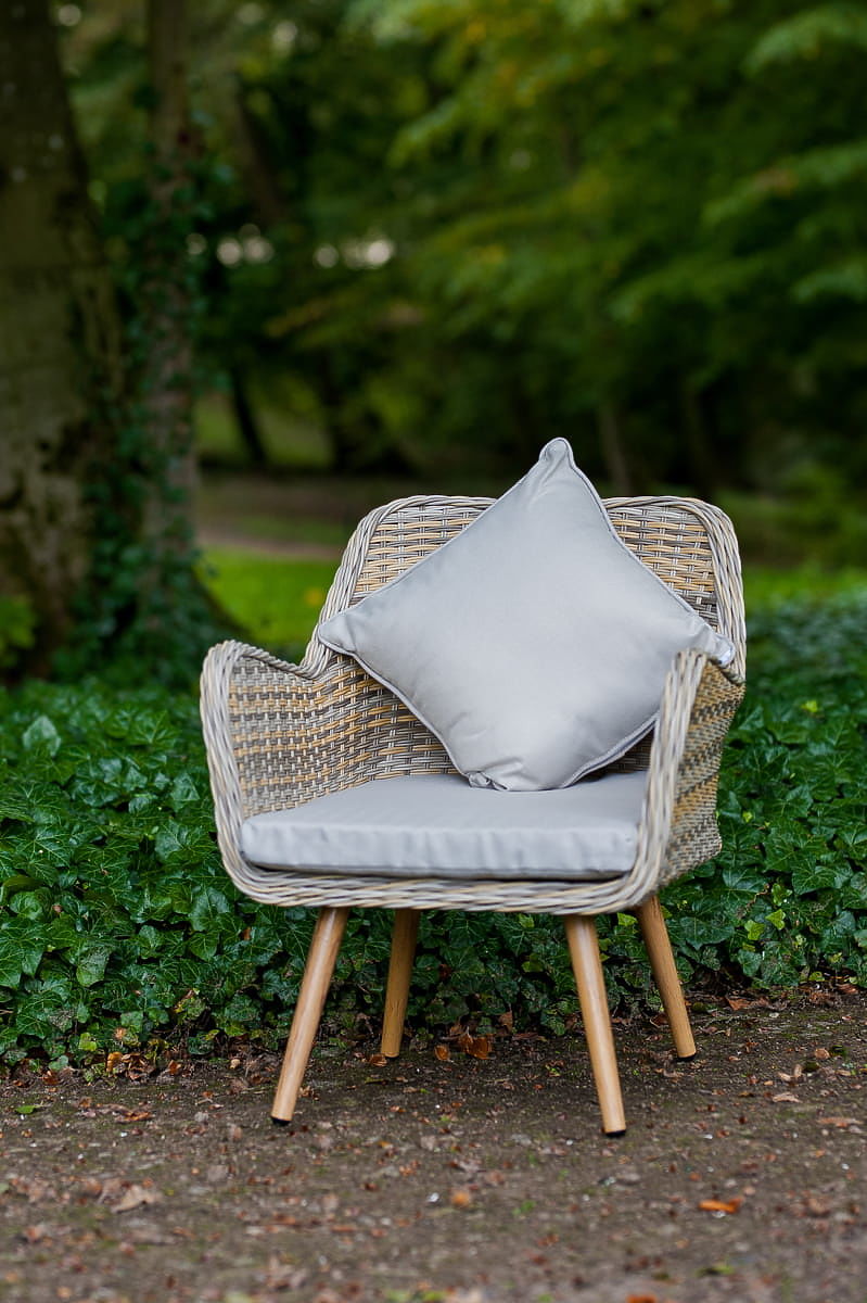 Das Gartenmöbelset BELICCO ist ein Synonym für Eleganz und Detailverliebtheit, geschaffen für Liebhaber stilvoller Entspannung im Freien. Es bietet bequeme Sessel und einen funktionalen Tisch. Dieses Balkonmöbelset ist die ideale Lösung, um einen gemütlichen Raum auf der Terrasse, dem Balkon oder im Garten zu schaffen. Moderne Formen kombiniert mit klassischem Design verleihen den Möbeln aus Technorattan einen einzigartigen Charakter, der sich perfekt in jede Umgebung einfügt. Dank der Verwendung von hochwertigem Technorattan ist dieses Gartenmöbel vollständig frost-, feuchtigkeits- und UV-beständig, was seine Langlebigkeit und Nutzung über viele Jahre hinweg garantiert. Das Entspannungsmöbelset BELICCO ist die ideale Wahl für diejenigen, die Modernität mit Funktionalität und Langlebigkeit verbinden möchten. Farbe des BELLICO-Sets: grau-beige meliert, unregelmäßig Geflecht: halbrunder Technorattan 5mm, glatte Struktur Möbelkonstruktion: Stahl Das Set besteht aus 3 Elementen: 2 x Sessel: Breite: 61 cm Tiefe: 72 cm Höhe: 76 cm 1 x Tisch (mit einer Glasplatte aus 5mm Sicherheitsglas): Durchmesser: 54 cm Höhe: 40 cm Weitere Maße: Breite der Armlehnen und Rückenlehne: 5 cm Sitzhöhe des Sessels: 33 cm + 5 cm Kissen Höhe der Rückenlehne vom Sitz: 46 cm Sitzmaße des Sessels: 55 cm x 50 cm Das Set wird auf 1 Palette mit den Maßen 80x60x100 cm, Gewicht 45 kg versendet. Kissen in hellgrauer Farbe für die Sitze und kleine Kissen sind im Set enthalten (2 Stk. für die Sitze + 2 Kissen). Sie haben abnehmbare Bezüge mit Reißverschluss, hergestellt aus Outdoor-Material (100% Polyester), die bei niedrigen Temperaturen waschbar sind. Die Kissenbezüge sind aus hochwertigem Stoff mit Teflonbeschichtung genäht, die sie vor Feuchtigkeit schützt. Die Kissenfüllung besteht aus hochwertigem Polsterschaum (mittlere Härte - T25), der Verformungen verhindert. Dicke der Kissen: 5 cm Technorattan ist widerstandsfähig gegen schädliche Witterungseinflüsse, jedoch empfehlen wir für eine noch längere Erhaltung des unveränderten Aussehens der Möbel den Kauf einer Schutzhülle. Die Abdeckung in dunkelgrauer Farbe ist einteilig und hat unten eine Kordelzug. Alle Abdeckungen sind maßgeschneidert und die Lieferzeit beträgt ca. 14 Arbeitstage. Stellen Sie sich Gartenmöbel vor, die Ihre Erwartungen in jeder Hinsicht übertreffen – von der Haltbarkeit bis zum Design. Hier ist BELLO GIARDINO, wo jedes Detail zählt und Luxus auf Funktionalität trifft: Unzerstörbare Qualität: Unser synthetisches Rattan garantiert, dass die Möbel jahrelang halten, ohne an Schönheit oder Haltbarkeit zu verlieren. Wetterbeständigkeit: Unsere Möbel trotzen den härtesten Witterungsbedingungen, von sengender Sonne bis hin zu eisigen Wintern, und bleiben dabei stets schön. Luxuriöser Komfort: Dicke, weiche Kissen laden zum Entspannen ein und bieten Komfort, der schwer woanders zu finden ist. Leichtigkeit und Stärke: Die Aluminiumkonstruktion vereint das Beste aus beiden Welten – sie ist leicht, aber äußerst stabil. Design, das verzaubert: Jedes Element unserer Möbel wurde mit Blick auf Ästhetik und Funktionalität entworfen, um in jede Umgebung zu passen. Ob Sie Minimalismus lieben oder reiche, elegante Arrangements schätzen, unsere Möbel erfüllen Ihre Erwartungen und überschreiten die Grenzen gewöhnlicher Funktionalität und Ästhetik. Wir stellen sicher, dass selbst die anspruchsvollsten Kunden dem Komfort und Stil, den BELLO GIARDINO bietet, nicht widerstehen können. Machen Sie Ihren Garten, Ihre Terrasse oder Ihren Balkon zu einer Oase der Entspannung und Eleganz, die Sie schon immer haben wollten. Warten Sie nicht, entdecken Sie BELLO GIARDINO noch heute und verwandeln Sie Ihre Außenbereiche in Orte, von denen Sie immer geträumt haben. Fotos von unseren Kunden