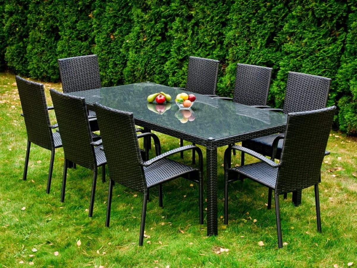 Lukahome.at   »   Gartenmöbel   /   Gartensets   /   Großes Ess-Set aus Technorattan (Tisch 200x100cm + 8 Stühle) SOTTILE schwarz