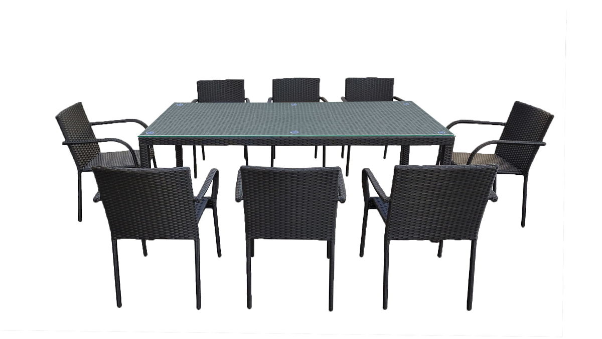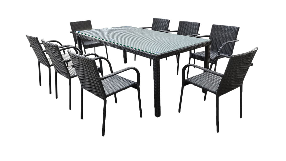 Großes Ess-Set aus Technorattan (Tisch 200x100cm + 8 Stühle) SOTTILE schwarz