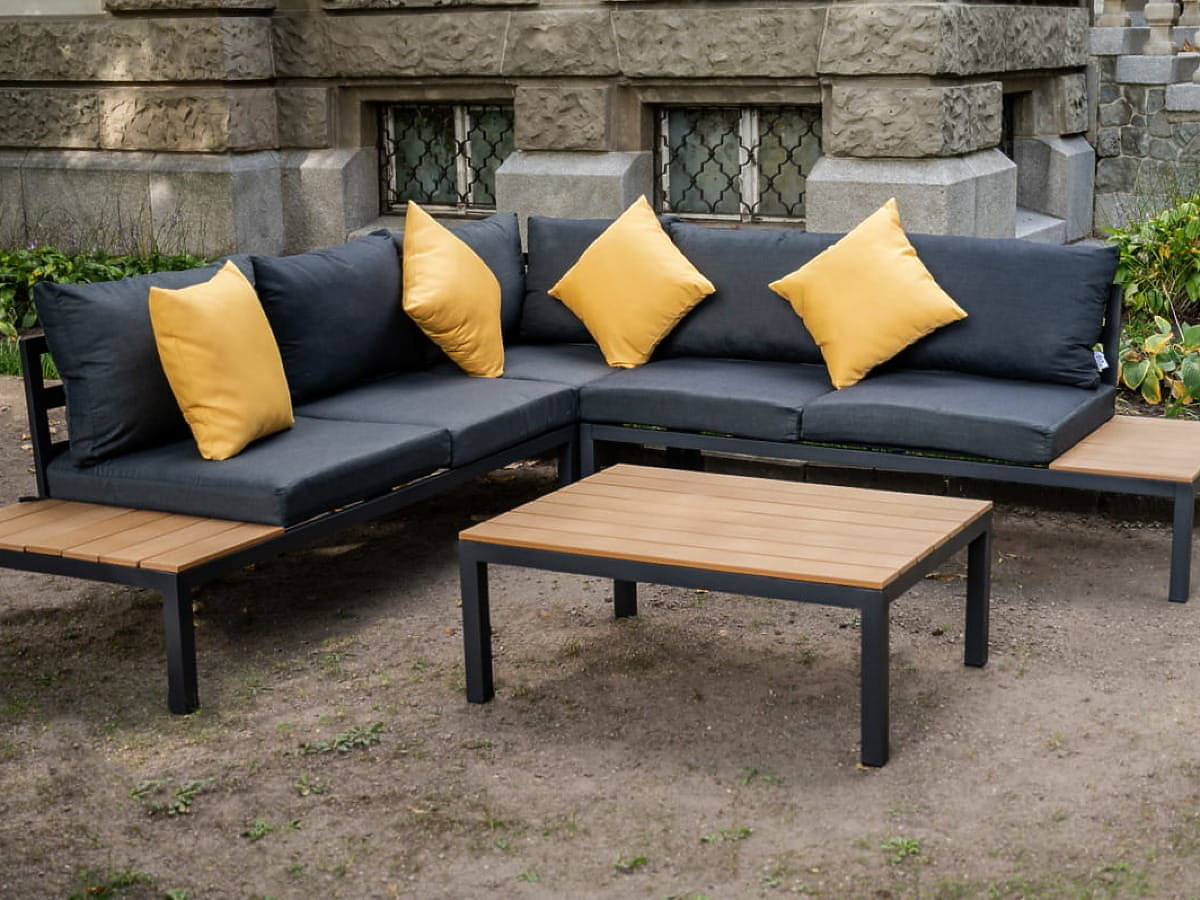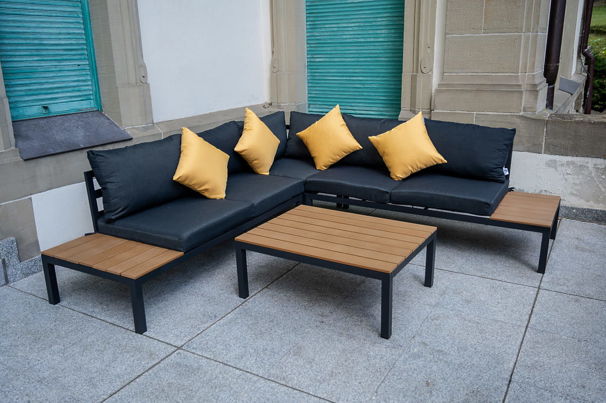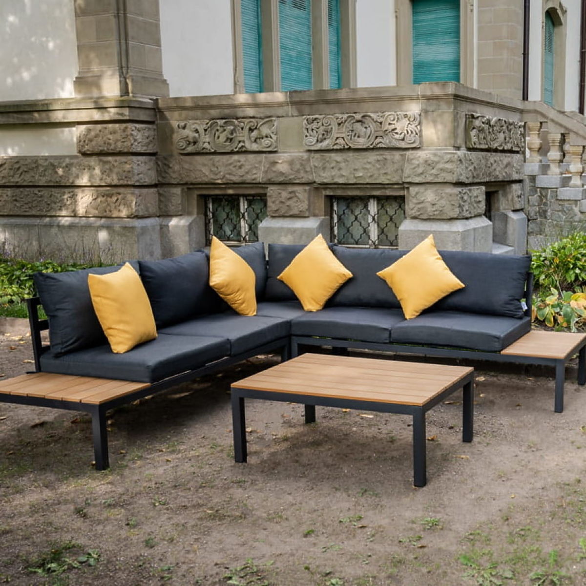 Lukahome.at   »   Gartenmöbel   /   Gartensets   /   Großes Eckset aus Aluminium mit Tisch MASSIMO schwarz