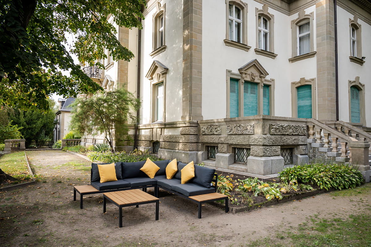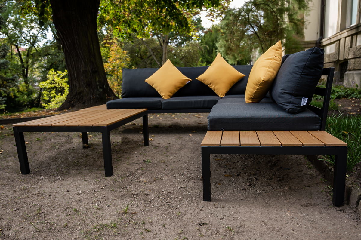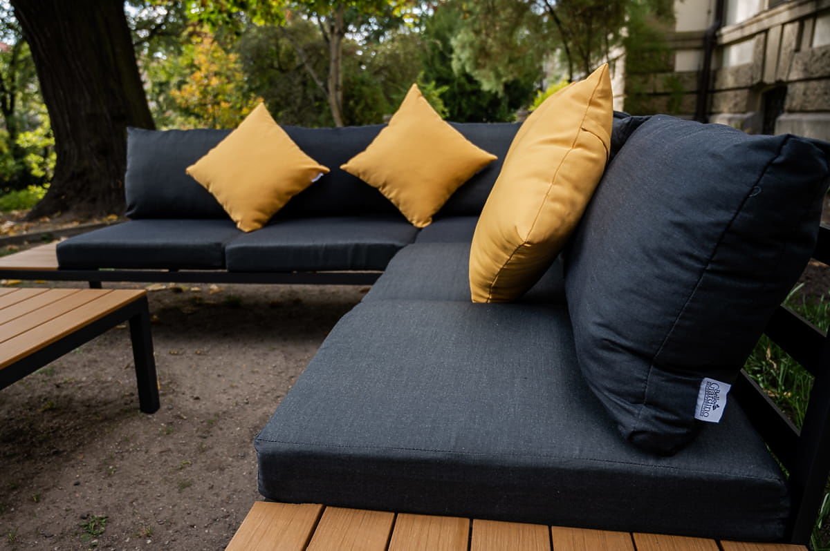 Dieses exklusive Gartenmöbelset ist aus hochwertigem pulverbeschichtetem Aluminium gefertigt, das nicht nur Widerstandsfähigkeit gegen Regen, Wind und schädliche UV-Strahlen bietet, sondern auch durch sein Aussehen besticht. Die Gartenmöbel MASSIMO haben einen schwarzen Rahmen, der wunderschön mit den bequemen grauen Kissen kontrastiert und eine ideale Kombination schafft, die in jede häusliche Umgebung passt. Die Aluminium-Relaxmöbel verbinden Klasse und hohe Verarbeitungsqualität und bieten nicht nur Komfort und Funktionalität, sondern verleihen jedem Garten, jeder Terrasse oder jedem Balkon einen eleganten Charakter. Es ist die ideale Lösung für diejenigen, die zeitloses Design und langanhaltende Qualität schätzen. Farbe des MASSIMO Sets: schwarz Farbe der Kissen: grau Möbelkonstruktion: Aluminium Set bestehend aus 4 Elementen: 2 x Seitenelement (rechts und links): Breite: 168 cm Tiefe: 72 cm Höhe: 67 cm 1 x Eckmodul: Breite: 72 cm Tiefe: 72 cm Höhe: 67 cm 1 x Tisch (Tischplatte aus Polywood): Länge: 90 cm Breite: 70 cm Höhe: 35 cm Weitere Abmessungen: Sitzhöhe der Module: 30 cm + 10 cm Kissen Rückenlehnenhöhe vom Sitz: 38 cm Sitzmaße des Sofas: 67 cm x 132 cm Regalmaße: 69 cm x 35 cm Rückenlehnenbreite: 2 cm Rückenkissen ragen 12 cm über die Kante der Rückenlehne hinaus Das Set wird auf 1 Palette mit den Maßen 120x80x190 cm versendet, Gewicht 70 kg Kissen in grauer Farbe für Sitzflächen und Rückenlehnen im Set enthalten (5 Stück für Sitzflächen, 6 Stück für Rückenlehnen). Alle haben abnehmbare Bezüge mit Reißverschluss, hergestellt aus Outdoor-Material (100% Polyester), die bei niedrigen Temperaturen gewaschen werden können. Die Kissenbezüge sind aus hochwertigem Stoff mit Teflonbeschichtung gefertigt, die sie vor Feuchtigkeit schützt. Die Kissenfüllung besteht aus hochwertigem Polsterschaum (mittlere Härte - T25), der Verformungen verhindert. Dicke der Sitzkissen: 10 cm, Dicke der Rückenkissen: 20 cm. Möglichkeit zur Anfertigung von Kissen nach individueller Bestellung für dieses Set: https://www.bg-meble.pl/pl/p/Usluga-Krawiecka-Poduszki-Na-Zamowienie-/742 Möglichkeit zur Anfertigung von Kissenbezügen nach individueller Bestellung für dieses Set: https://www.bg-meble.pl/pl/p/Usluga-Krawiecka-Poszewki-Na-Zamowienie/743 Stellen Sie sich Gartenmöbel vor, die Ihre Erwartungen in jeder Hinsicht übertreffen – von der Widerstandsfähigkeit bis zum Design. Hier ist BELLO GIARDINO, wo jedes Detail zählt und Luxus auf Funktionalität trifft: Unveränderliche Qualität: Unser synthetisches Rattan garantiert, dass die Möbel jahrelang halten, ohne an Schönheit oder Haltbarkeit zu verlieren. Wetterbeständigkeit: Unsere Möbel trotzen den härtesten Wetterbedingungen, von sengender Sonne bis zu eisigen Wintern, und bleiben dennoch schön. Luxuriöser Komfort: Dicke, weiche Kissen laden zum Entspannen ein und bieten Komfort, den man anderswo kaum findet. Leichtigkeit und Haltbarkeit: Die Aluminiumkonstruktion vereint das Beste aus beiden Welten – sie ist leicht, aber äußerst stabil. Design, das begeistert: Jedes Element unserer Möbel wurde mit Blick auf Ästhetik und Funktionalität entworfen, um in jede Umgebung zu passen. Ob Sie Minimalismus lieben oder reichhaltige, elegante Arrangements schätzen, unsere Möbel erfüllen Ihre Erwartungen und überschreiten die Grenzen gewöhnlicher Funktionalität und Ästhetik. Wir garantieren, dass selbst die anspruchsvollsten Kunden dem Komfort und Stil, den BELLO GIARDINO bietet, nicht widerstehen können. Machen Sie Ihren Garten, Ihre Terrasse oder Ihren Balkon zu einer Oase der Entspannung und Eleganz, die Sie sich schon immer gewünscht haben. Warten Sie nicht, entdecken Sie BELLO GIARDINO noch heute und verwandeln Sie Ihre Außenbereiche in Orte, von denen Sie immer geträumt haben.