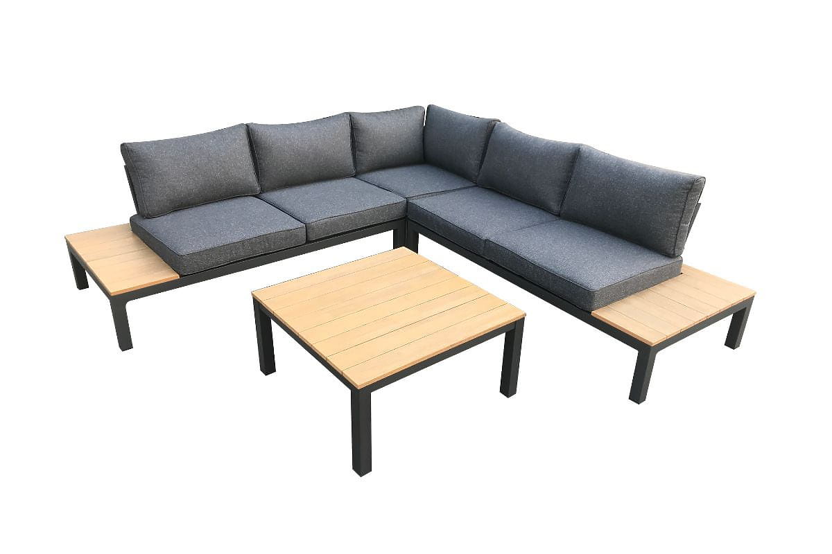 Großes Eckset aus Aluminium mit Tisch MASSIMO schwarz
