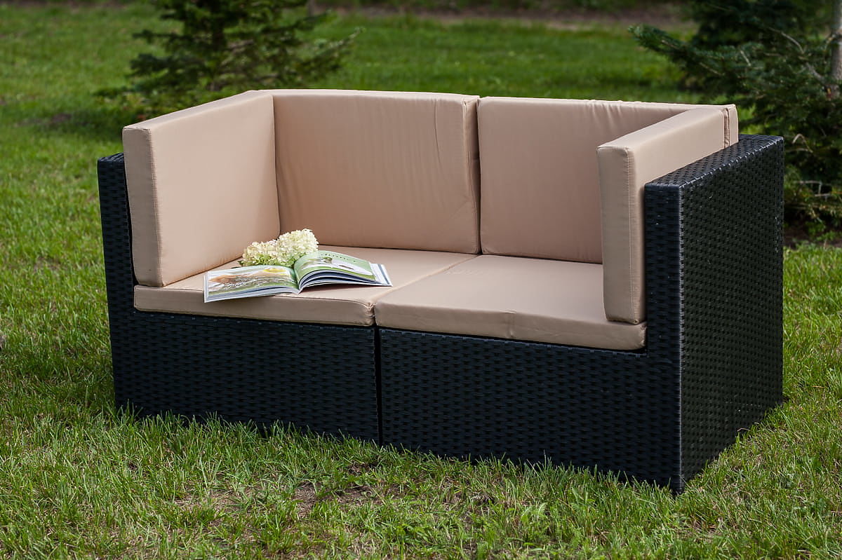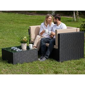 Zweisitzer-Sofa mit Technorattan-Tisch TINTO schwarz